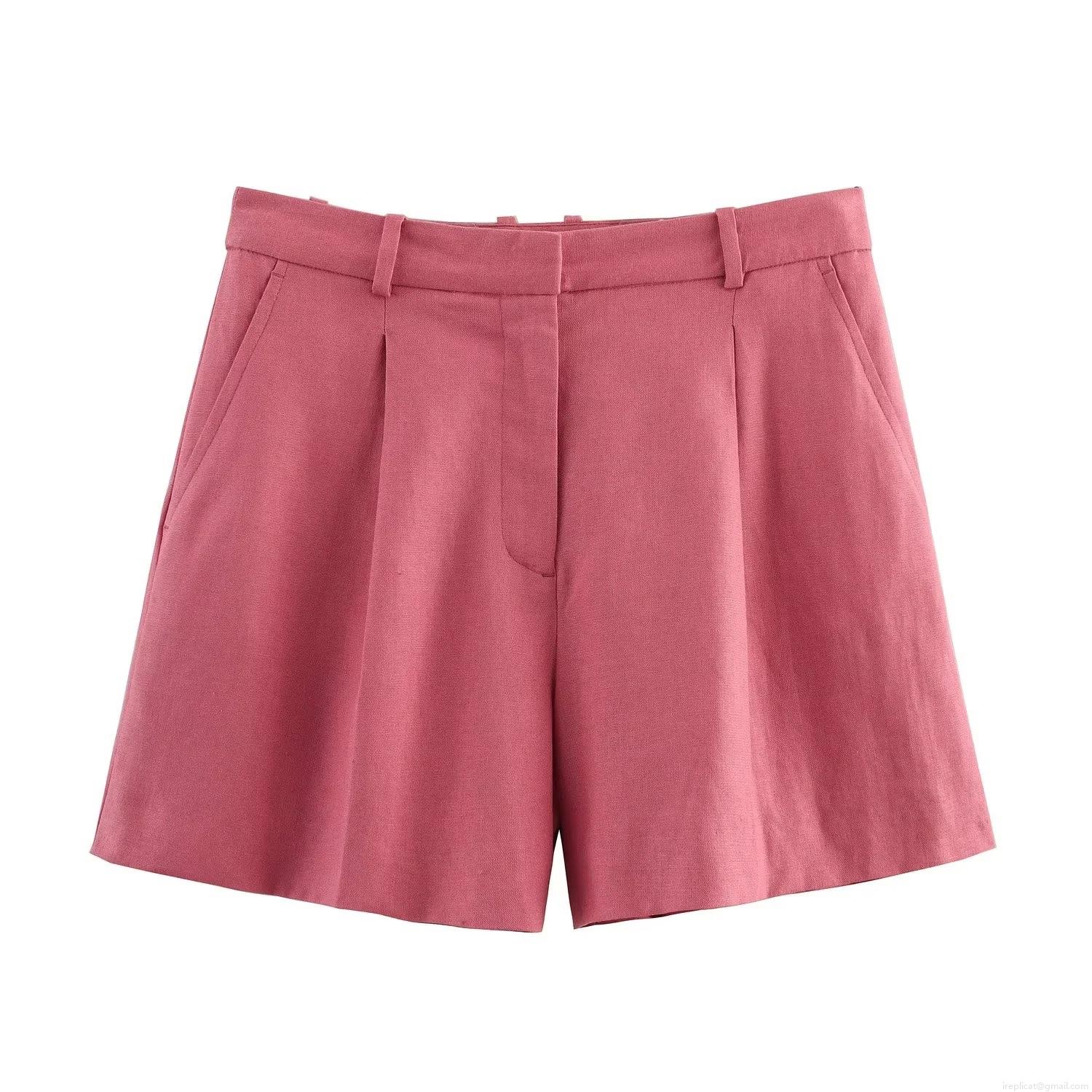 • Linen Blend V-Neck Single Breasted Vest And High Waist Shorts Two Piece Set For Women Casual Summer Streetwear Solid Peach Pink Outfit Beach Vacation