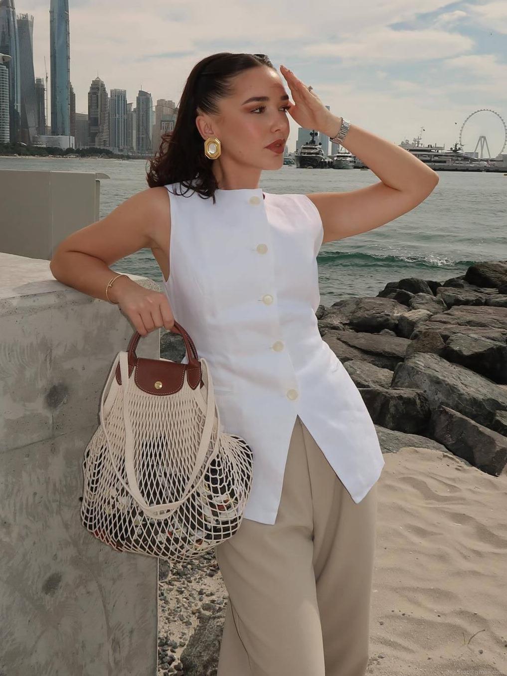 • Summer Women's 2-Piece Set Slim Fit Sleeveless V-Neck Single-Breasted Vest And High Waist Wide Leg Shorts Solid Color Polyester Streetwear Fashion Suit For Women