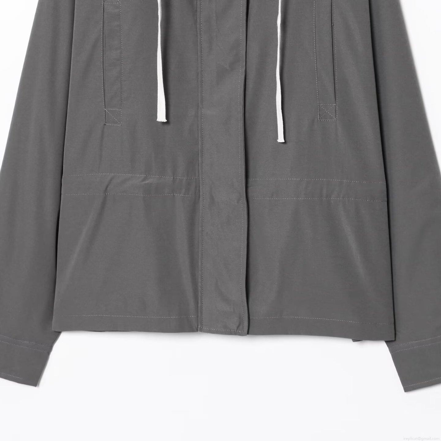Solid Color, Hood, Workwear Style, Big Pocket, White Drawstring, Contrasting Color Drawstring