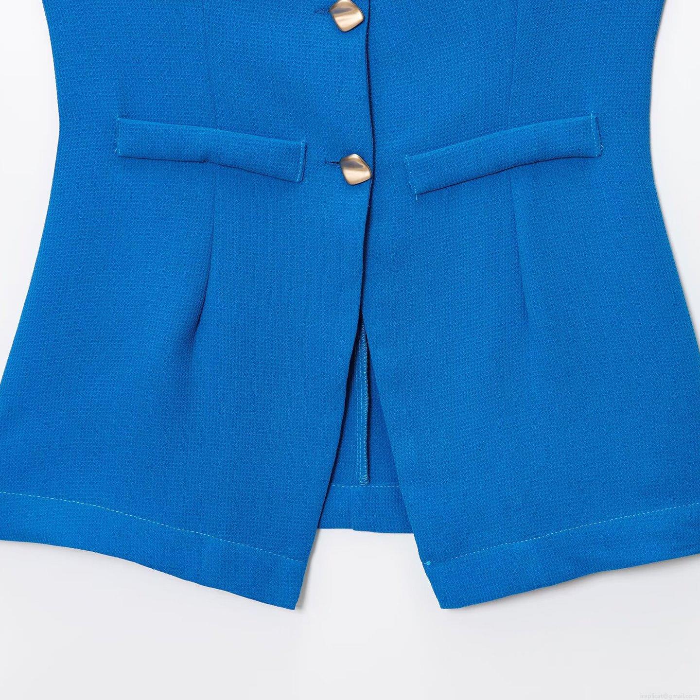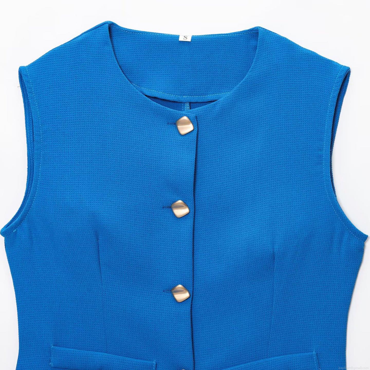 • Women Elegant Waffle Knit Sleeveless Vest Waistcoat Gold Buttons High Waist Shorts Casual Commuter Two Piece Set Summer Fashion Solid Color