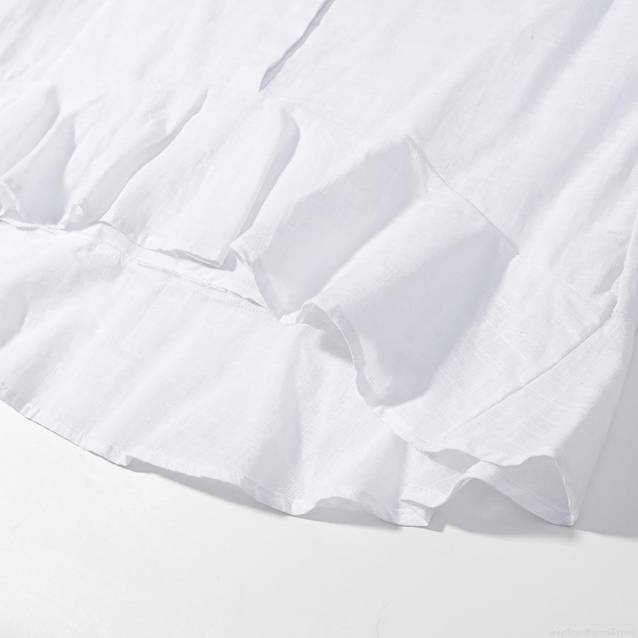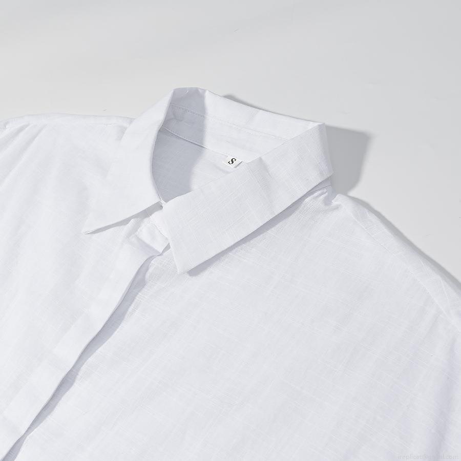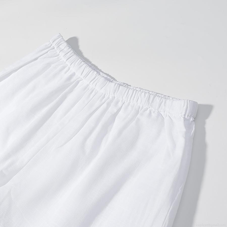 • Women Fashion Casual Loose Ruffle Short Sleeve Shirt Blouse And Elastic Waist Shorts Two-Piece Set Solid White Cotton Linen Texture Summer Outfits