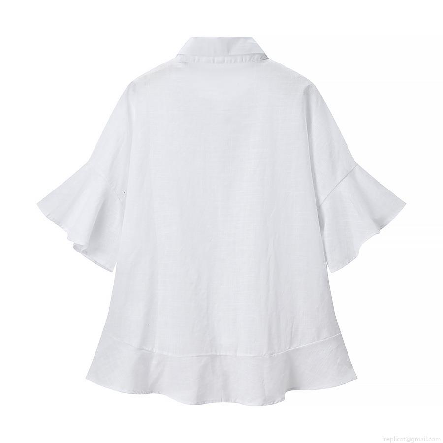 Women Fashion Casual Loose Ruffle Short Sleeve Shirt Blouse And Elastic Waist Shorts Two-Piece Set Solid White Cotton Linen Texture Summer Outfits