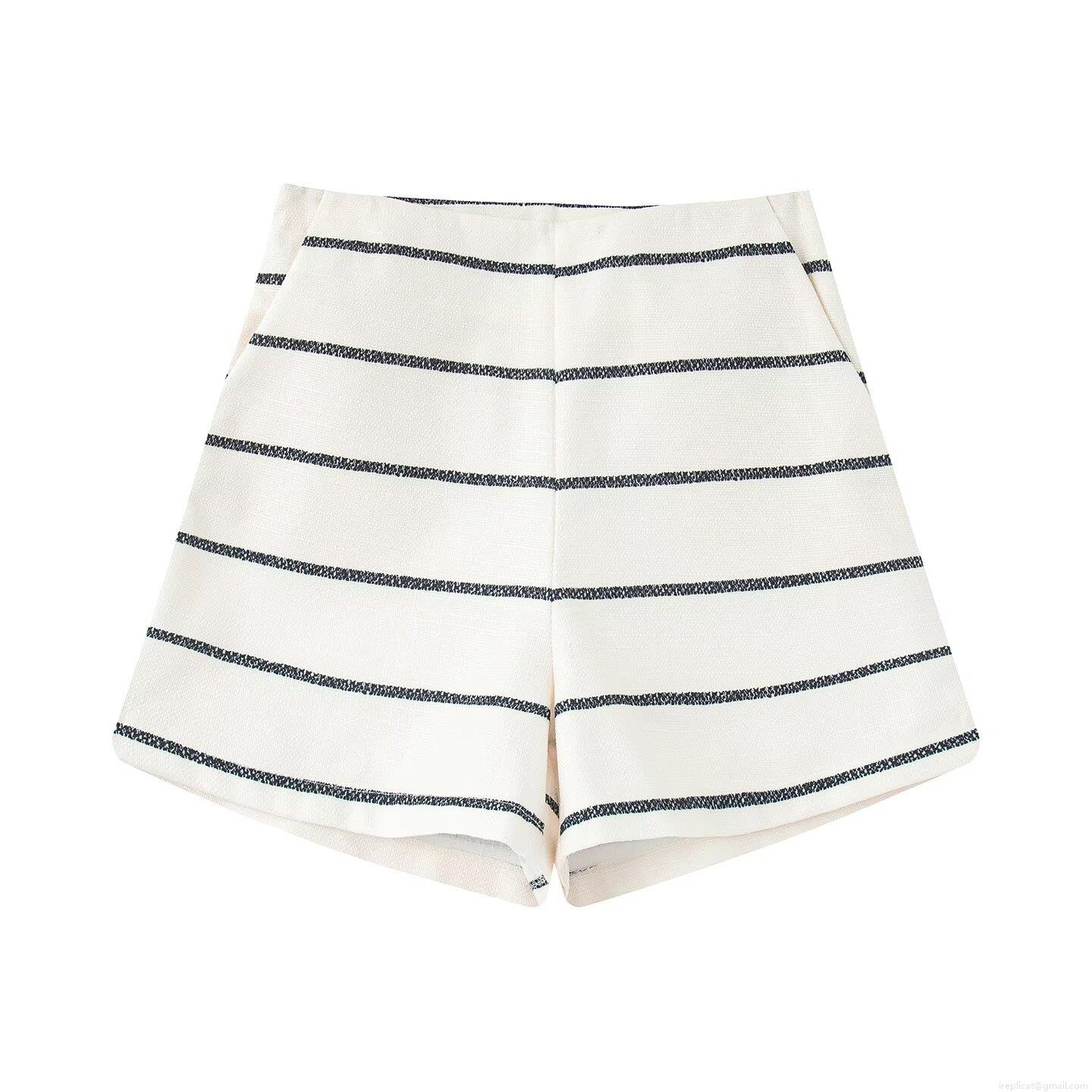 • Women French Style Tweed Two Piece Set Striped Short Sleeve Jacket Coat And High Waist Shorts Elegant Gold Button Up Office Lady Casual Outfit For Summer Spring