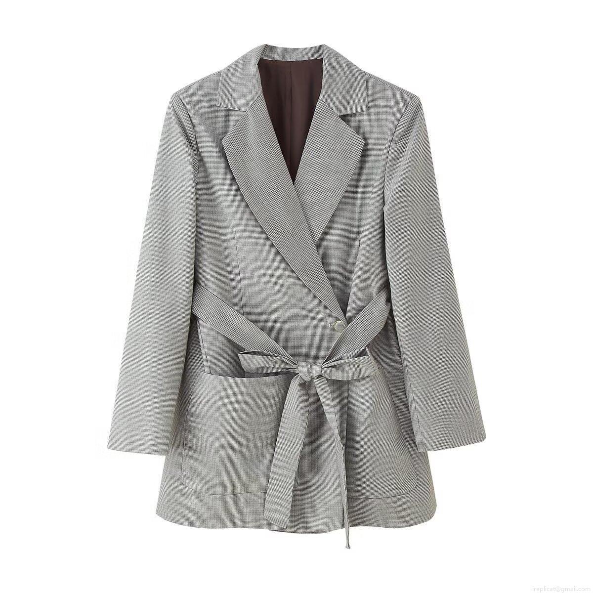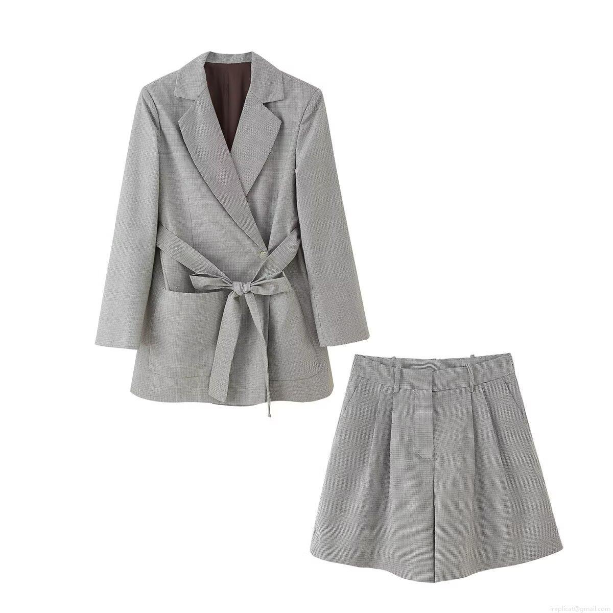 • Women Houndstooth Blazer Shorts Set Polyester Woven Lace-up Blazer With Metal Ring Buckle High Waist Shorts Professional Work Daily Casual Outfits For Ladies