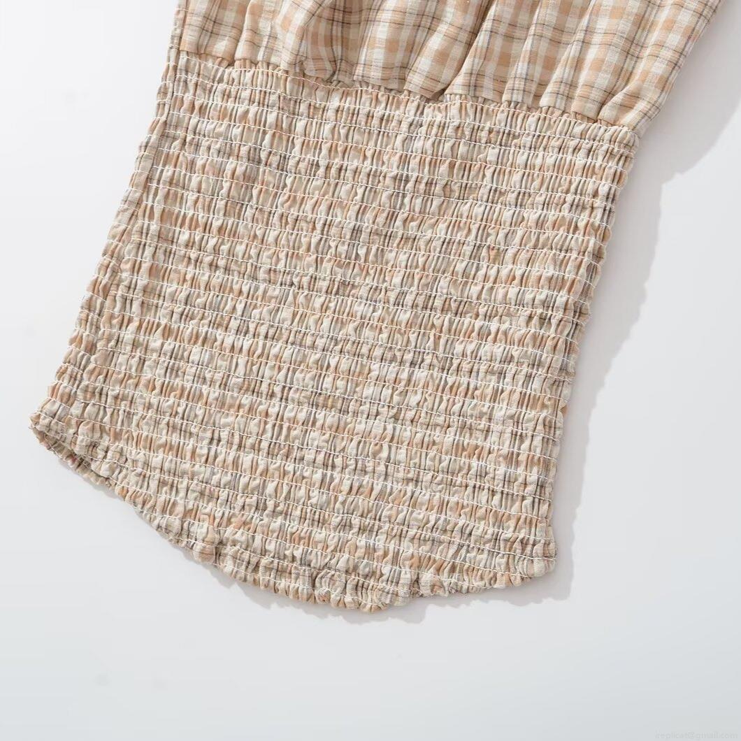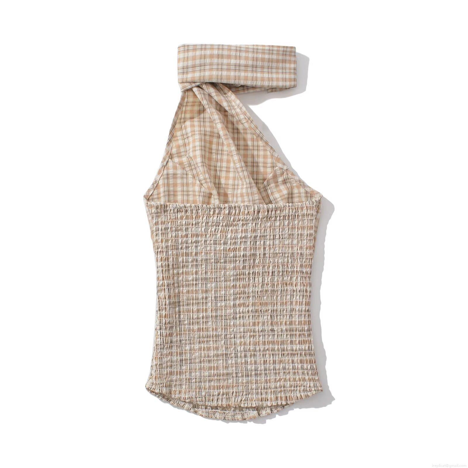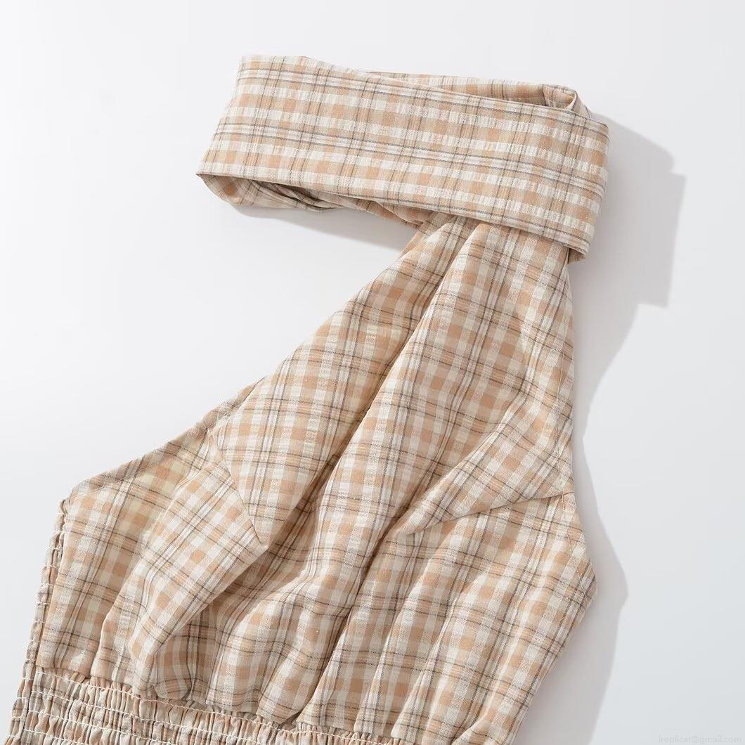 Gingham, Backless, Neckband Design, Bow Belt, Elastic Gathering