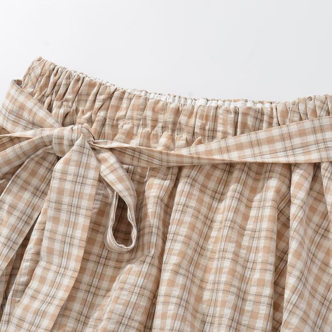 • Women Plaid 2 Piece Set Halter Backless Crop Top And Bow Belt Skort Set Cotton Blend Gingham Summer Sexy Outfit For Women Casual Party Wear
