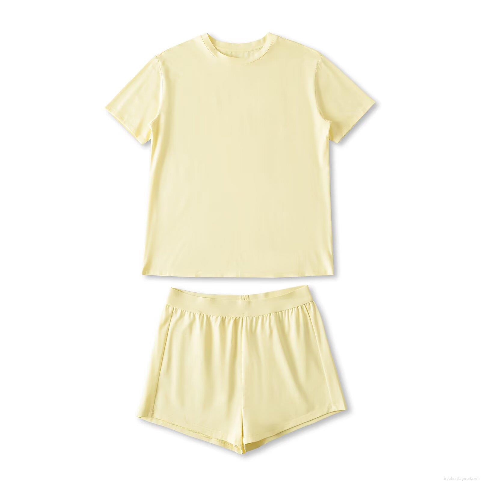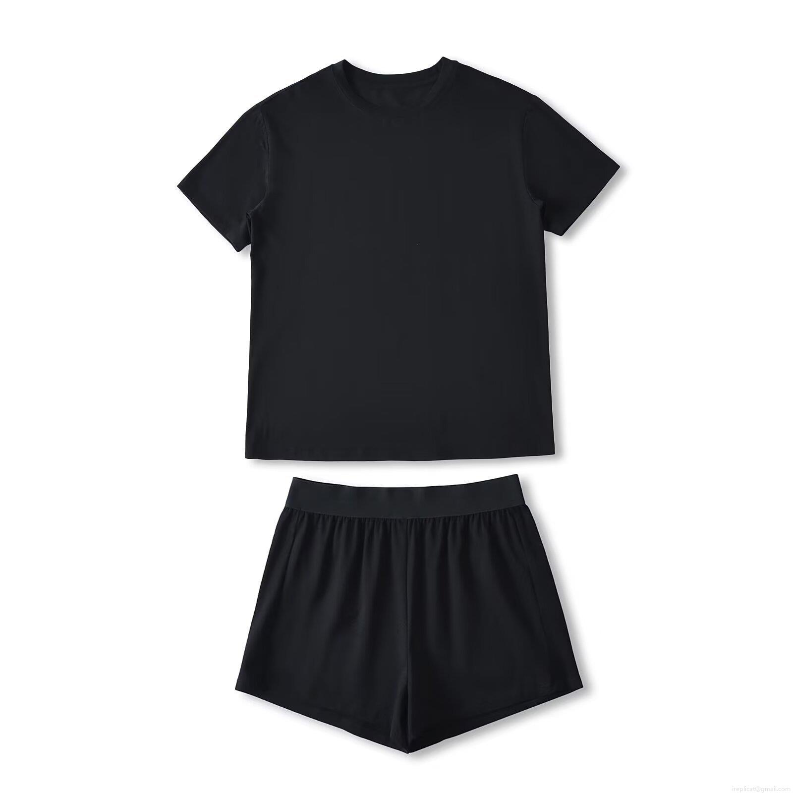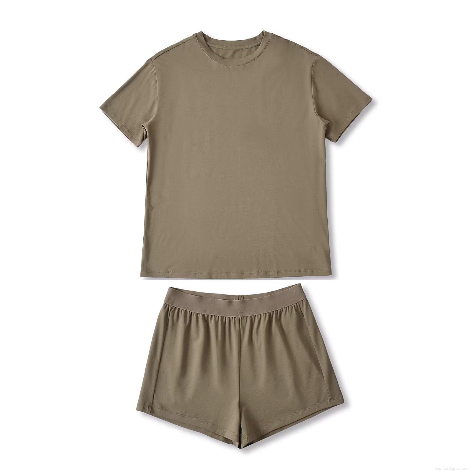 • Women Shorts Set Two-Piece Summer Outfit Round Neck Short Sleeve T-Shirt and Elastic Waist Shorts Cotton Viscose Blend Knit Tracksuit Casual Loungewear Solid Color Sporty Yoga Set