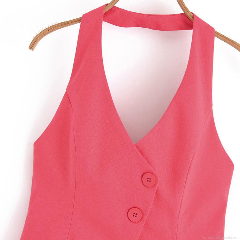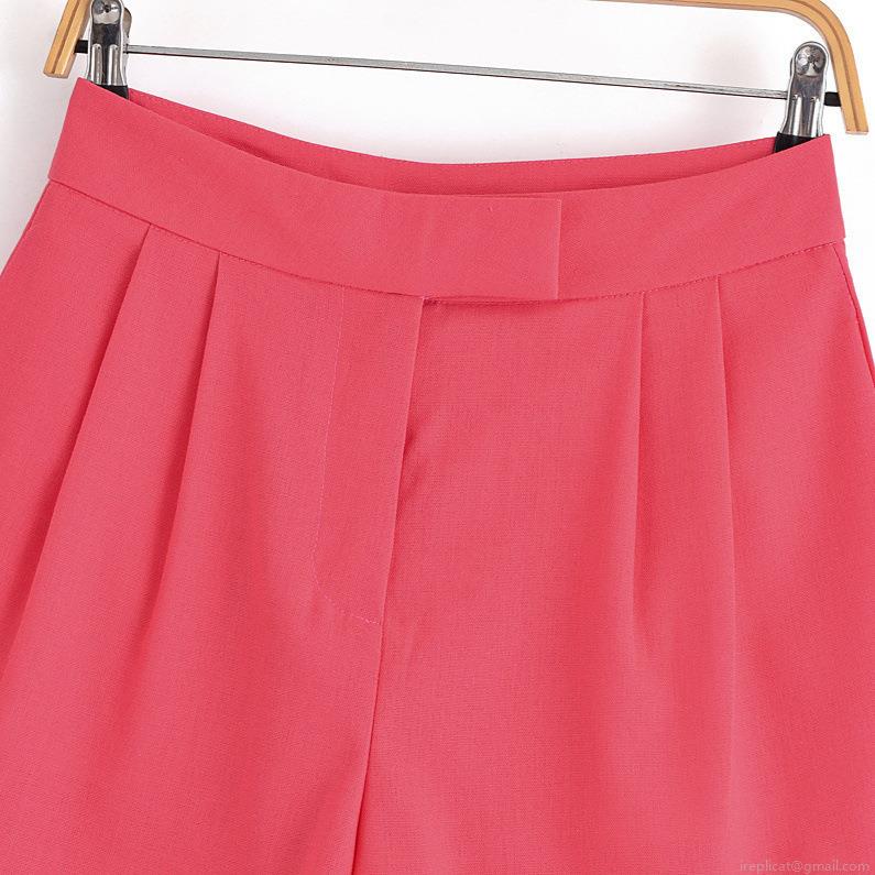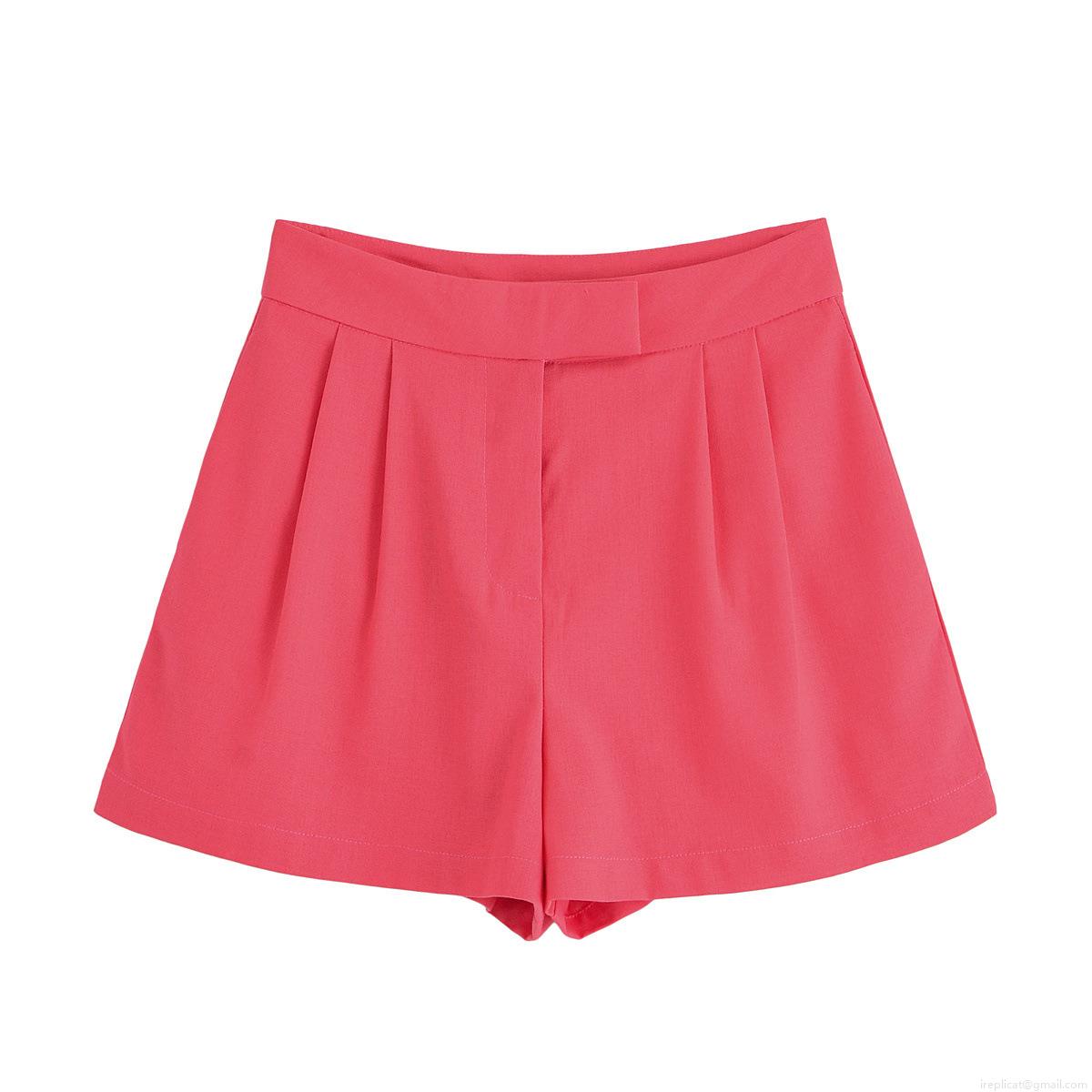 • Women Summer Two Piece Outfits Halter V Neck Pleated Vest Top And High Waist Wide Leg Shorts Set Polyester Spandex Rose Pink Elegant Office Lady Casual Suit