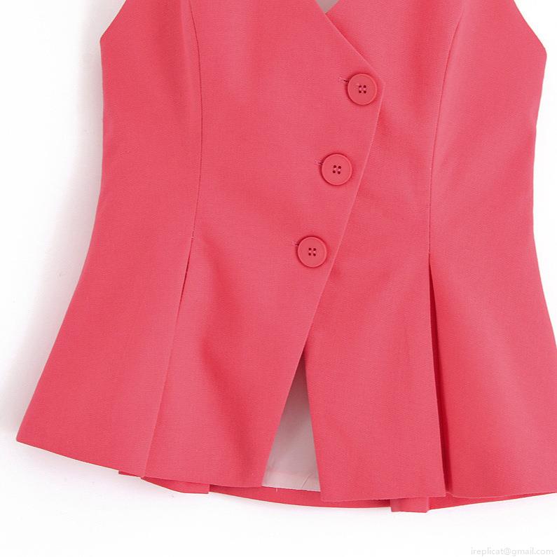 Solid Color, Pleats, Neckband, V-neck, Single-breasted