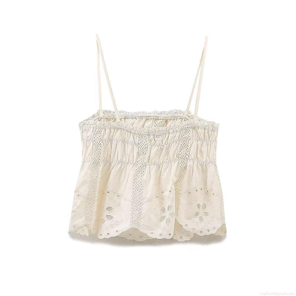 • Women Summer Two Piece Set Cotton Blend Camisole Top And Embroidered Shorts With Lace Eyelet Details Off White Boho Casual Beach Wear