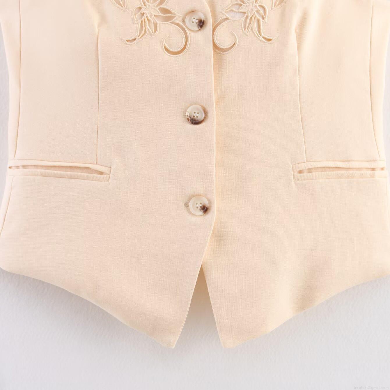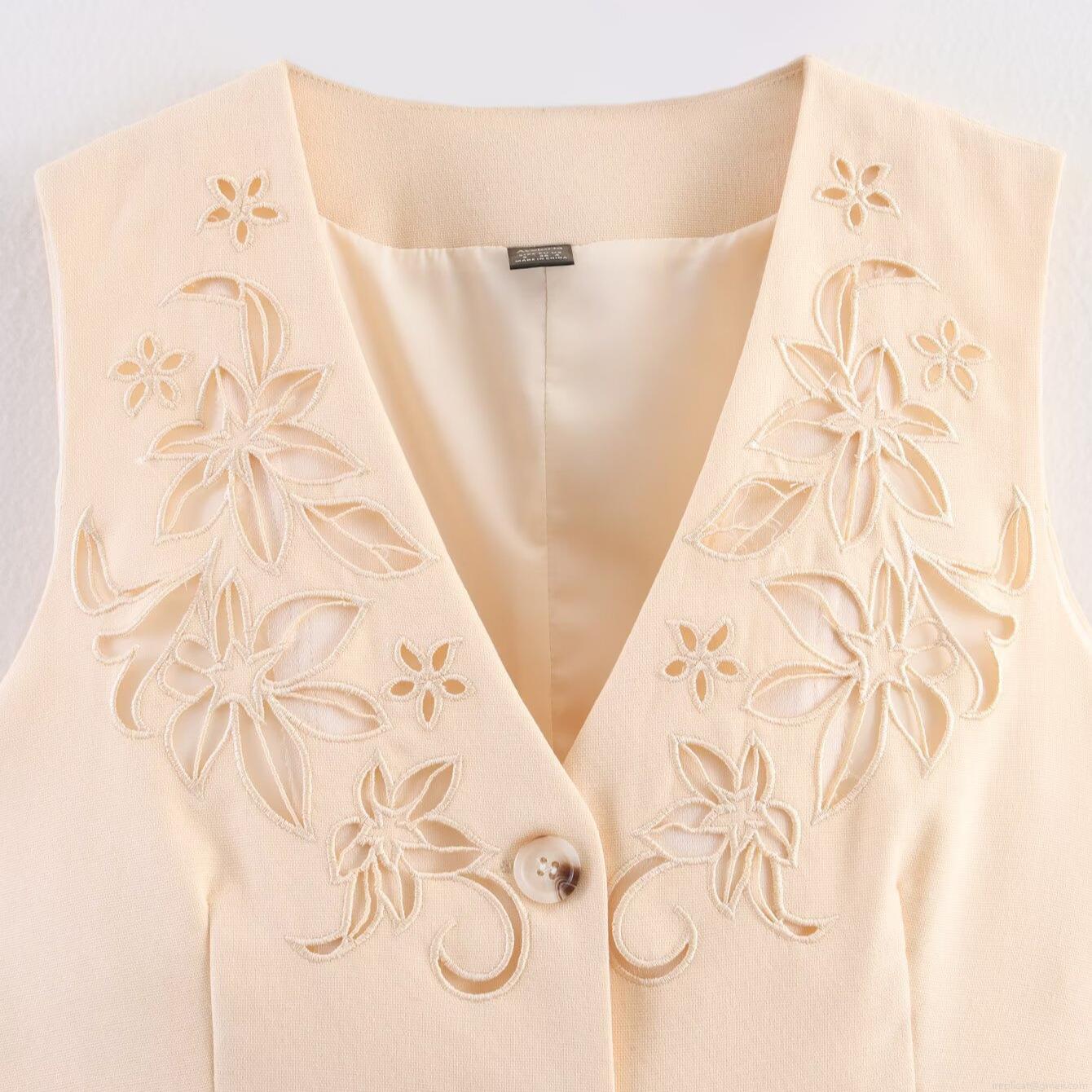 Embroidery, Hollow Out, Flowers, Laser Etching, V-neck, Amber Buckle