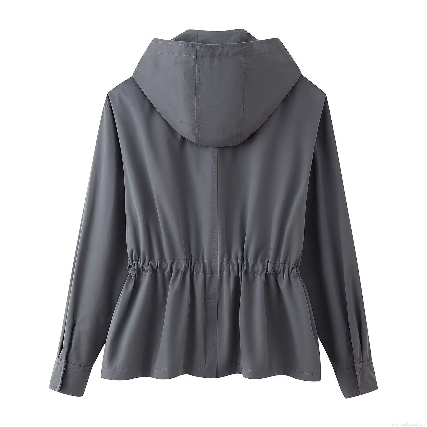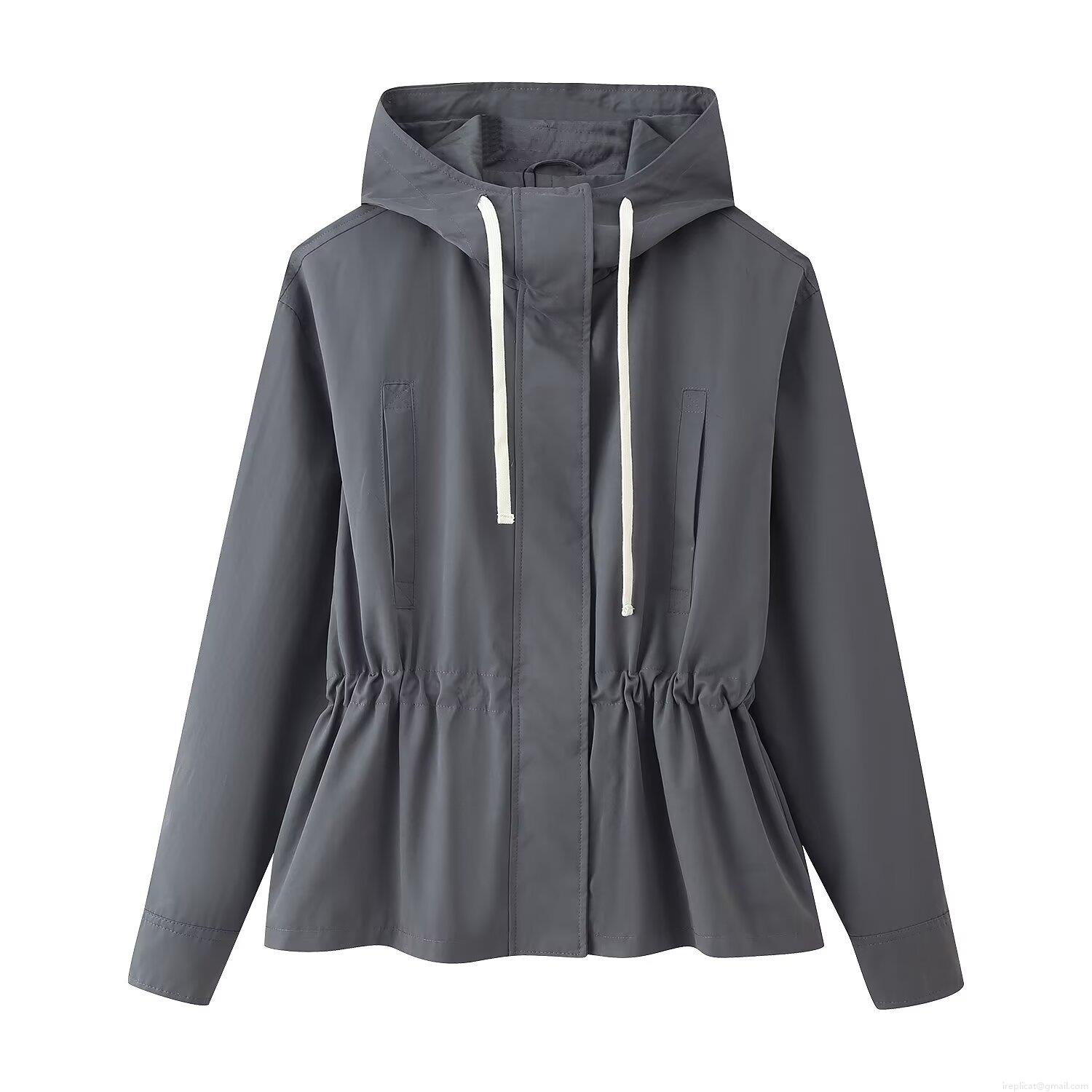 Solid Color, Pocket, Hood, Gathering, Workwear Style