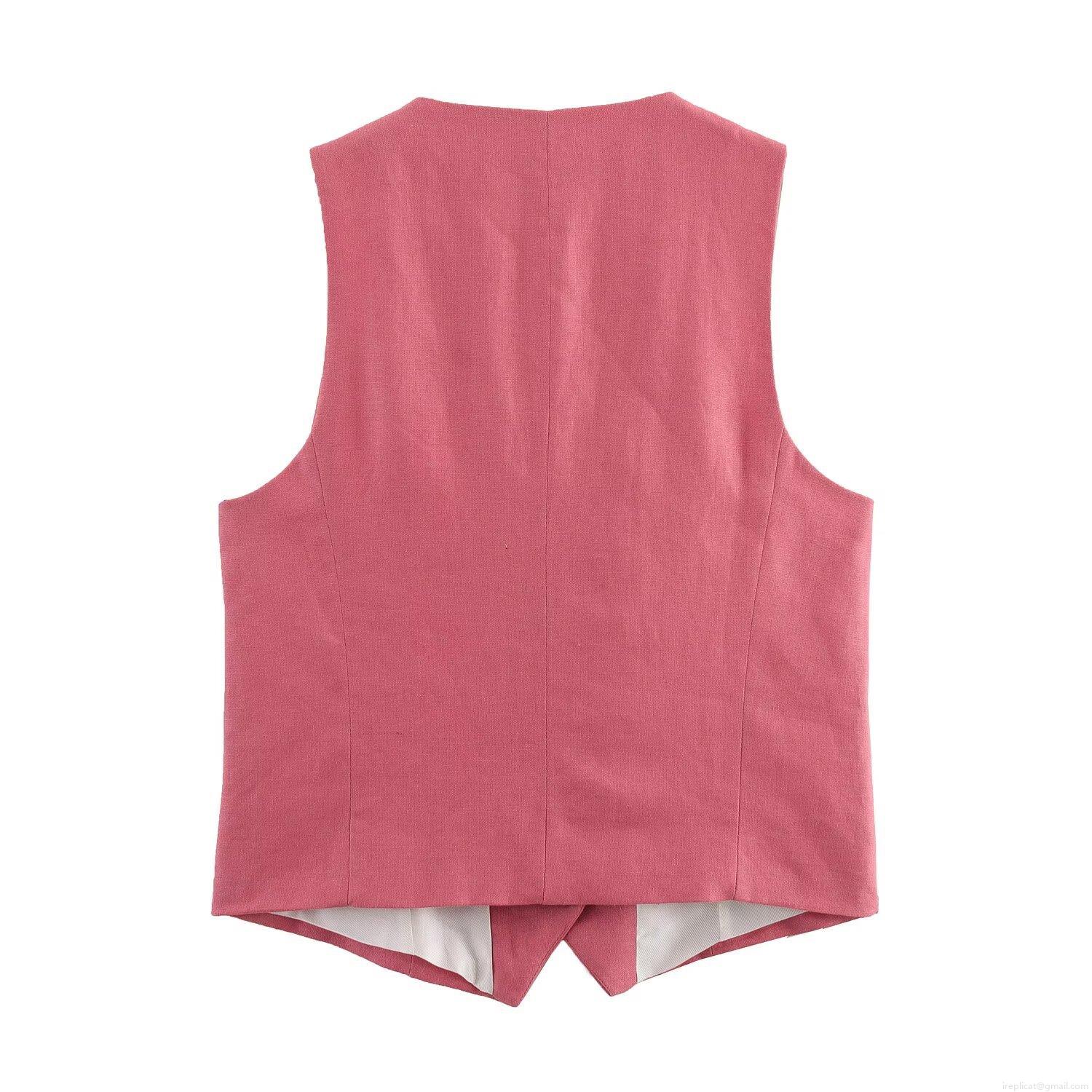 • Women's 2 Piece Casual Shorts Set Elegant V Neck Sleeveless Button Up Vest Top And High Waist Pleated Shorts Linen Blend Breathable Summer Streetwear Outfit