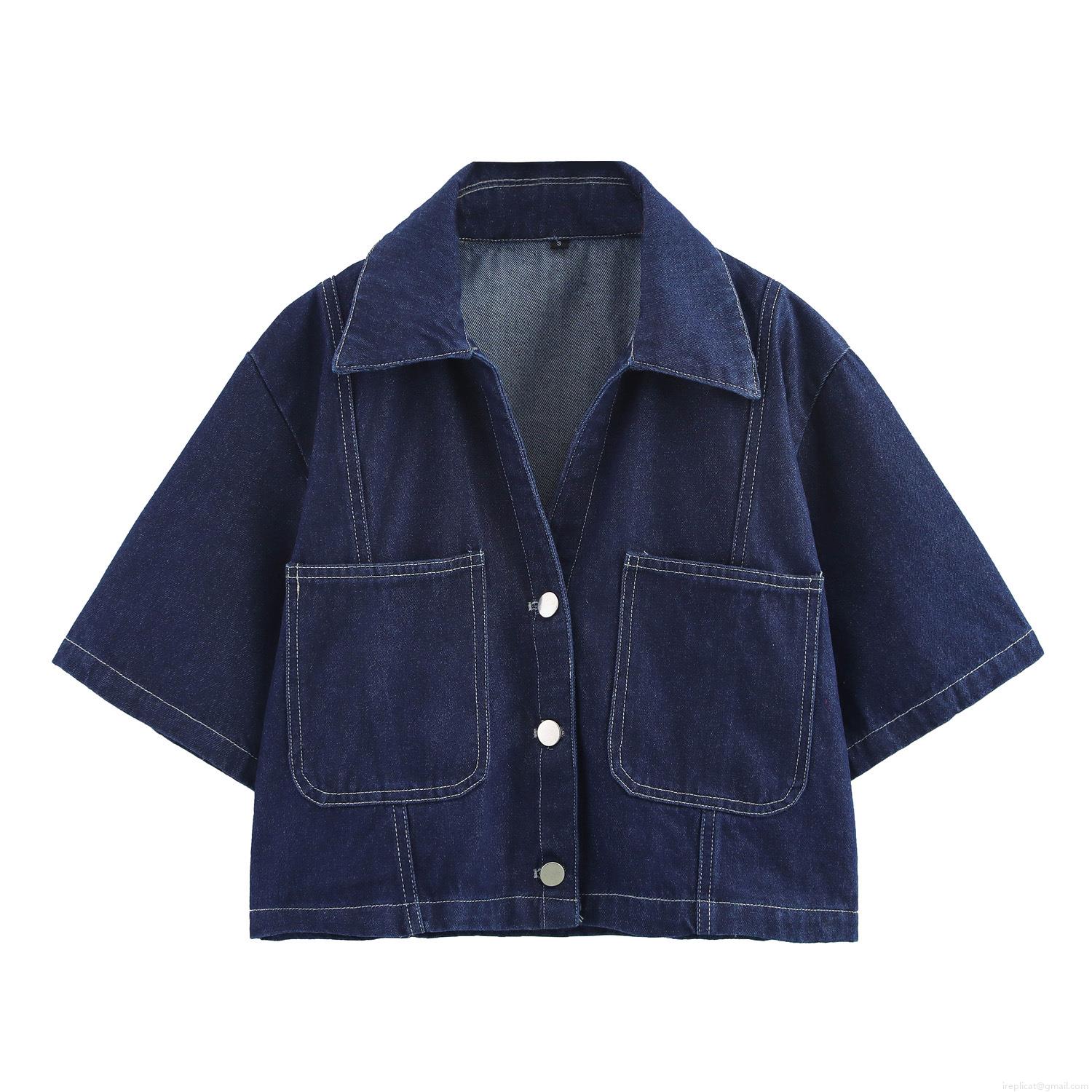 • Women's 2 Piece Denim Set Short Sleeve Single Breasted Jean Shirt And Asymmetric Skort Skirts Casual Streetwear Summer Outfit For Ladies