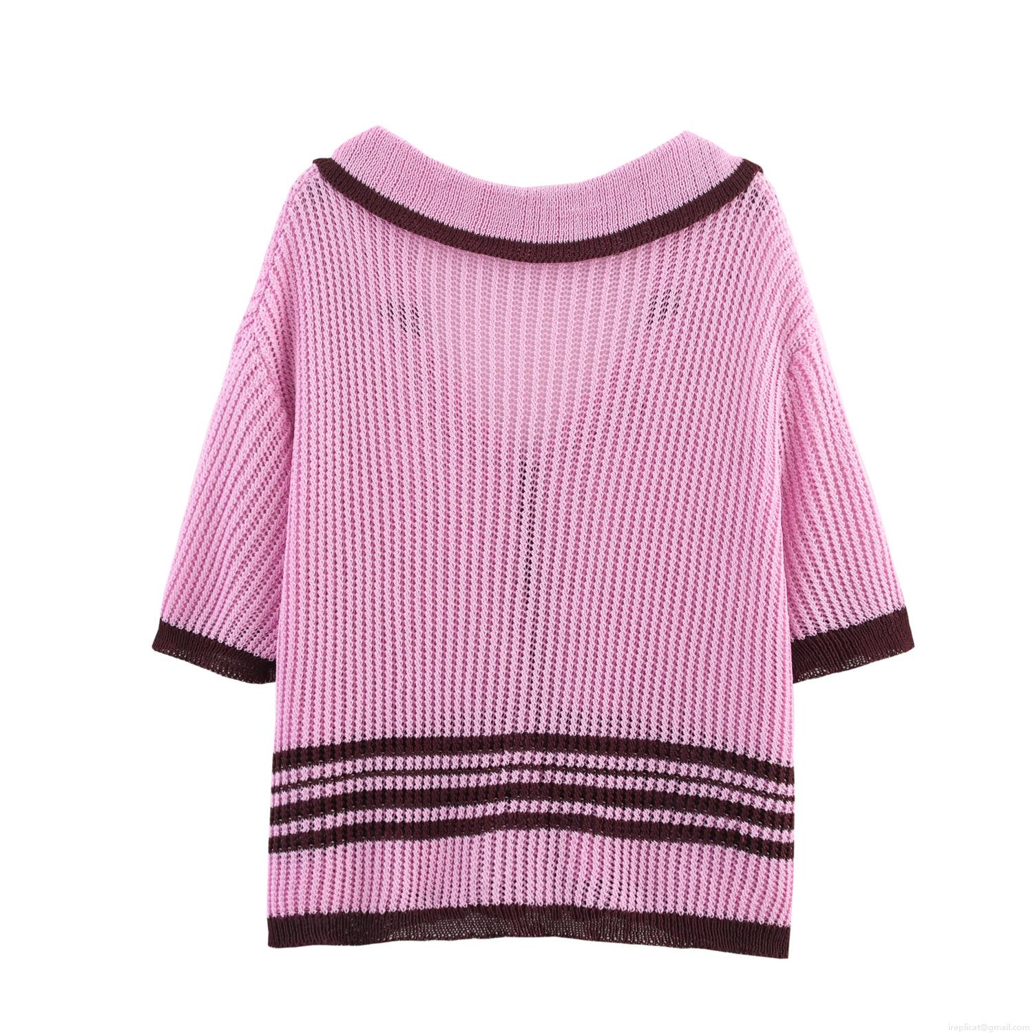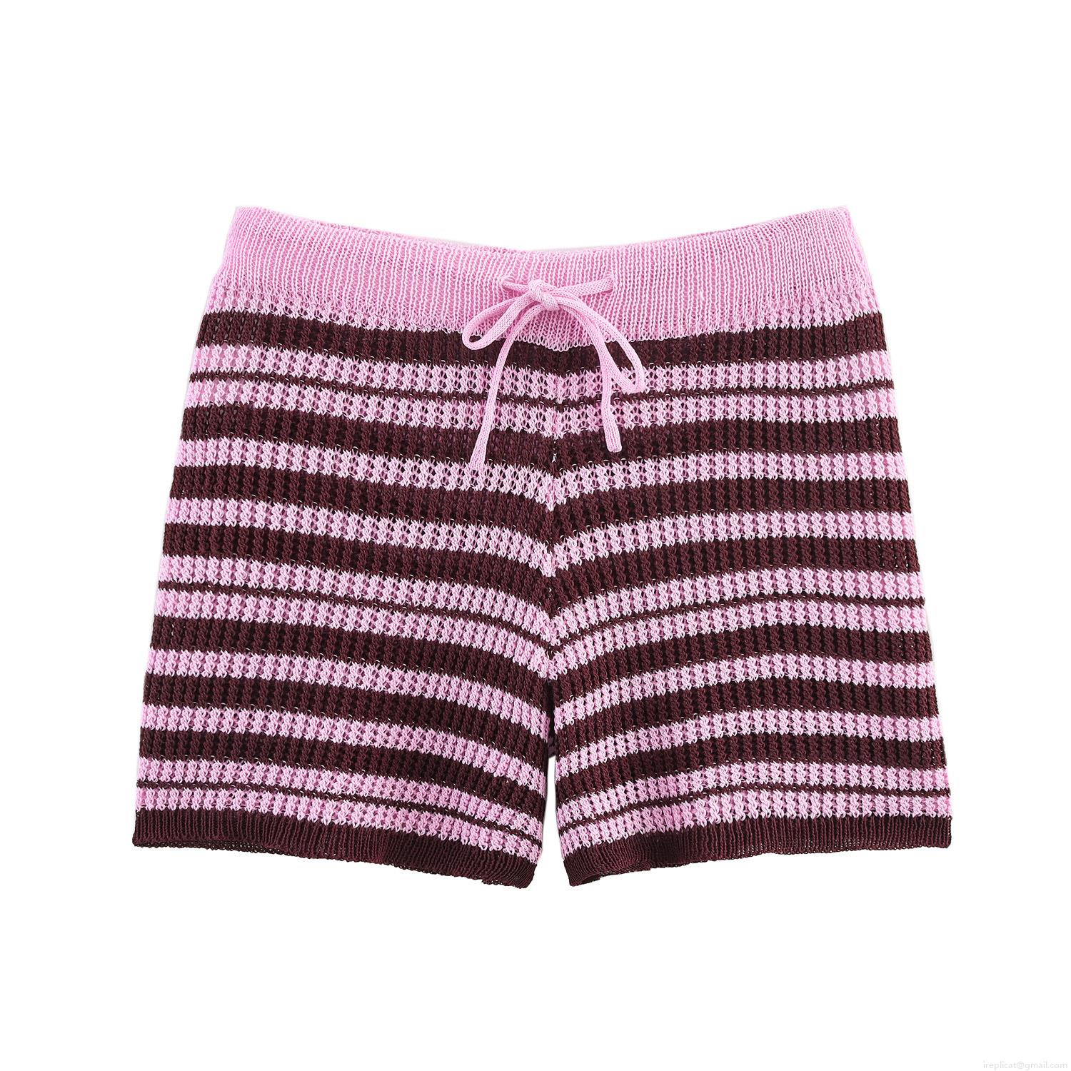 • Women's 2 Piece Knit Shorts Set Pink Striped V-Neck Short Sleeve Button-Down Cardigan Top and Elastic Waist Drawstring Shorts Casual Summer Streetwear Loungewear Outfit