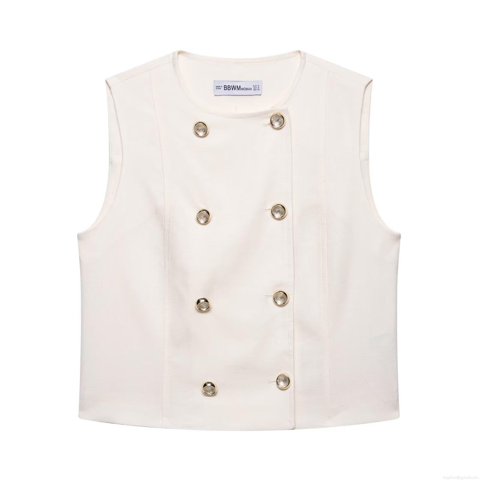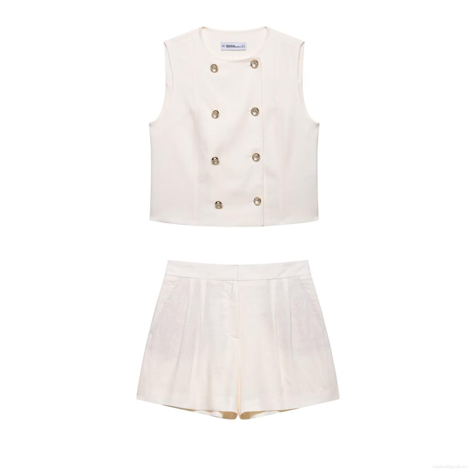 • Women's 2 Piece Shorts Set Double Breasted Sleeveless Vest Top And High Waist Pleated Shorts Polyester Woven Summer Casual Elegant Streetwear Outfit
