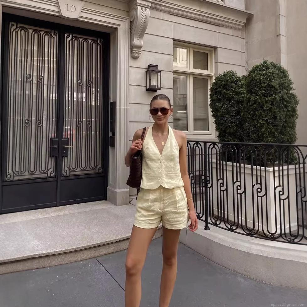 • Women's 2 Piece Shorts Set Halter Backless Button Up Vest and High Waist Wide Leg Shorts Linen Texture Summer Beach Casual Vacation Outfit