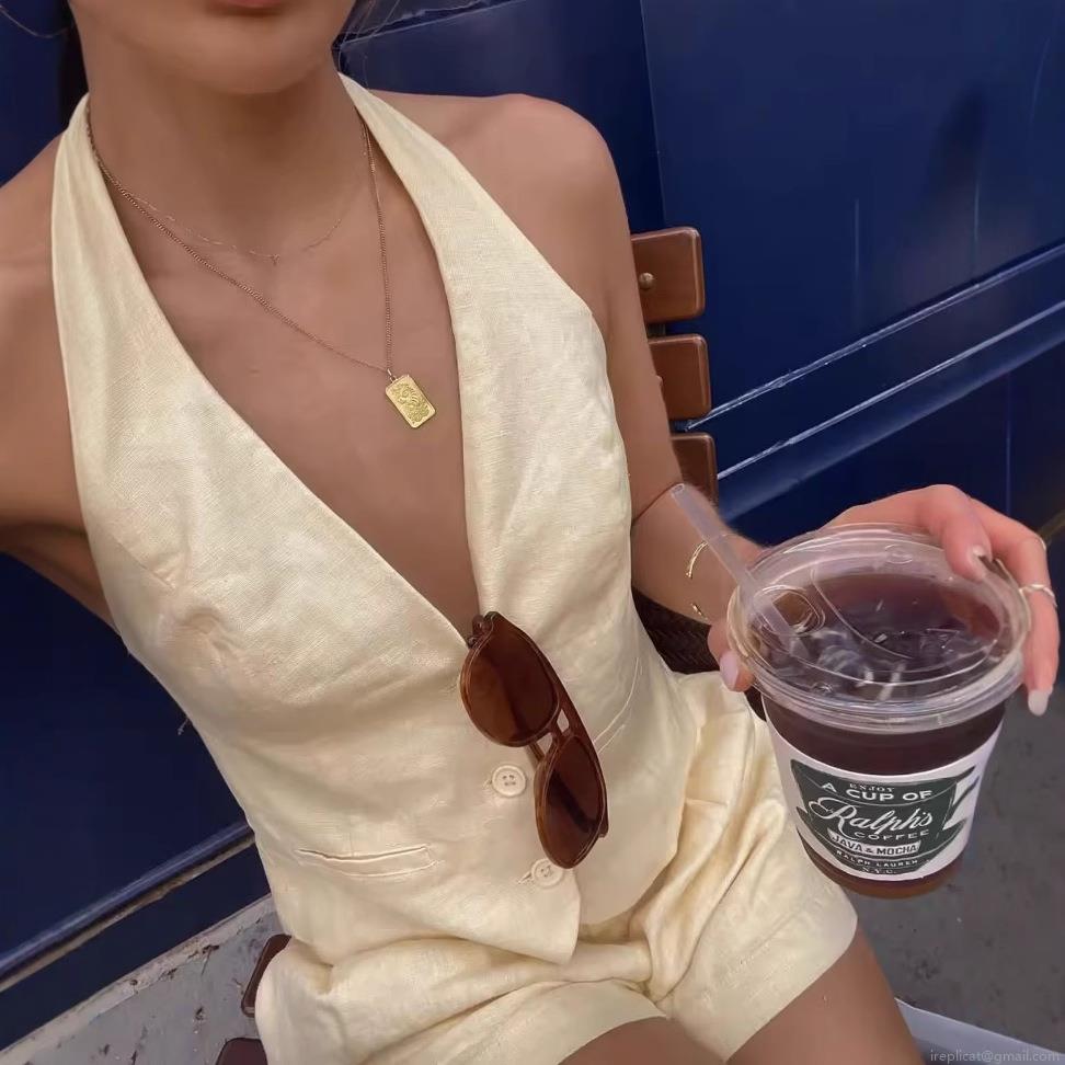 Solid Color, Backless, Single-breasted, Linen Texture, Neckband Design