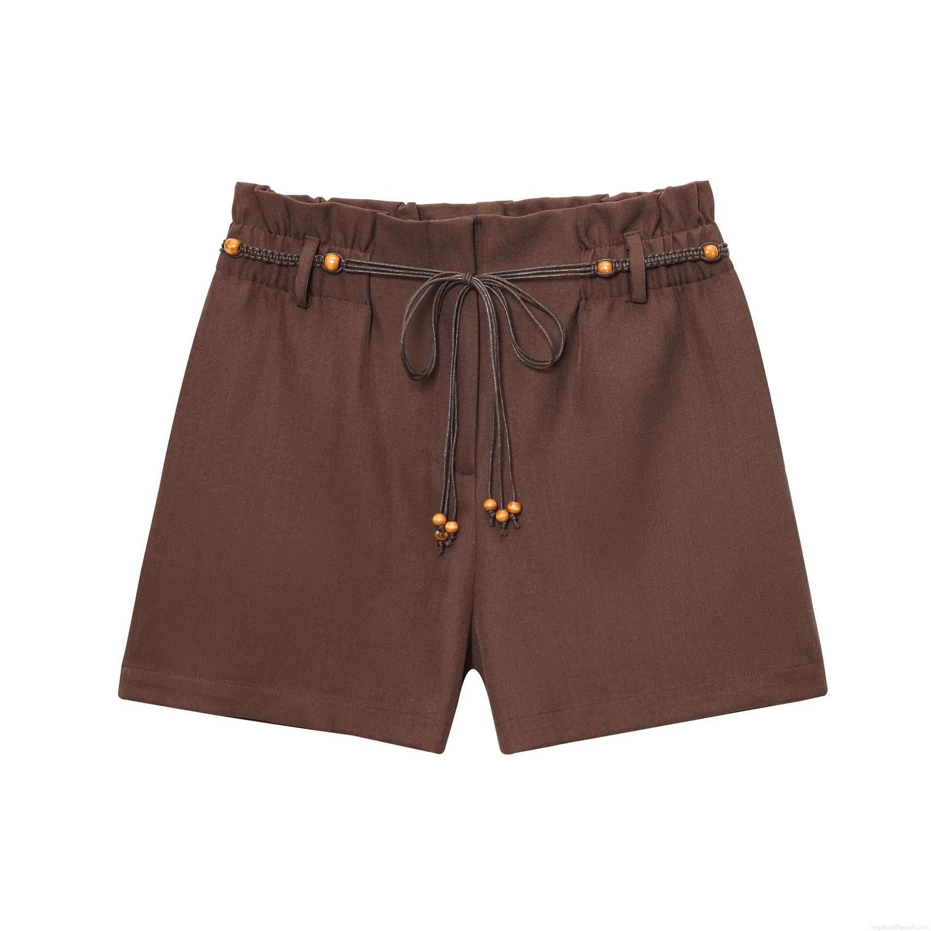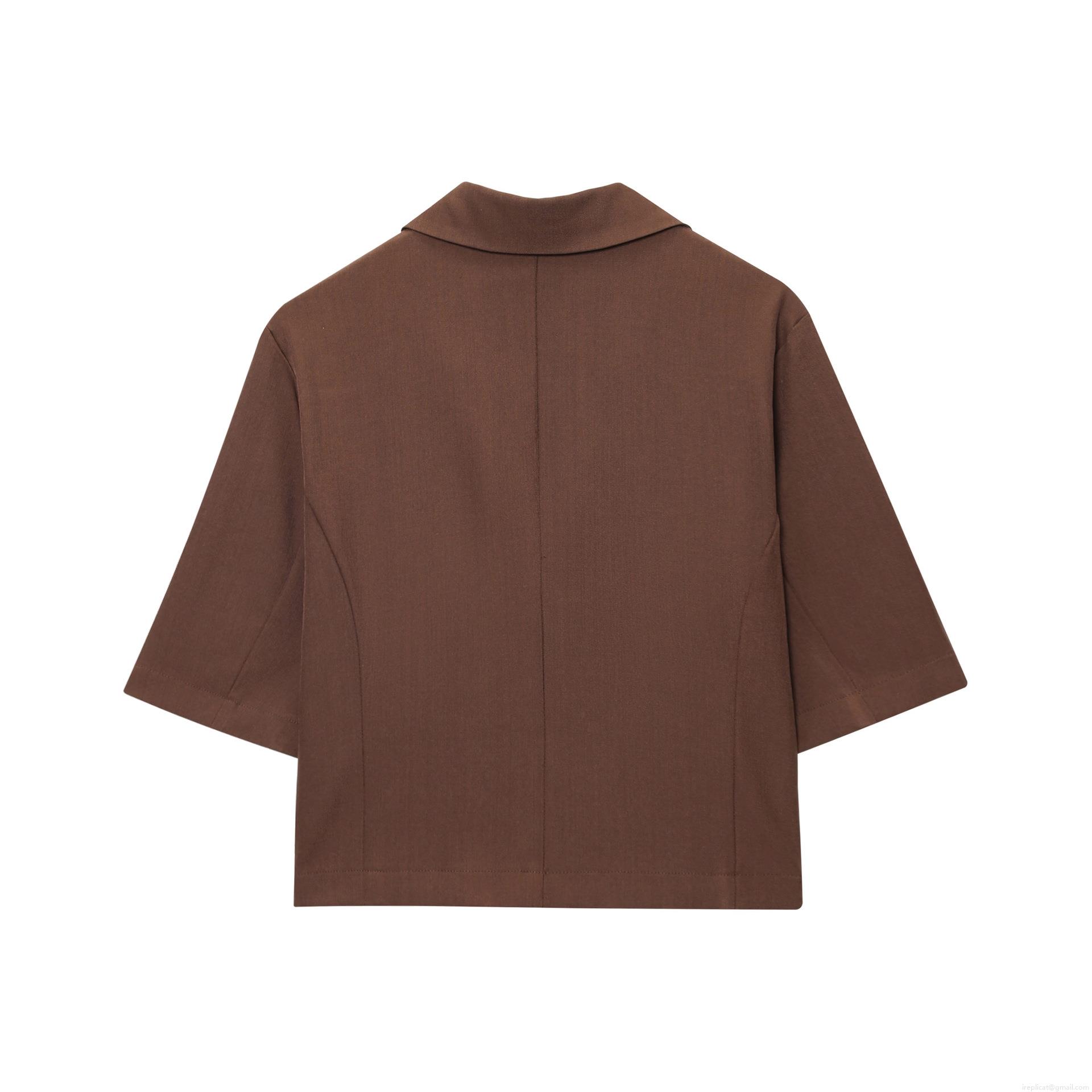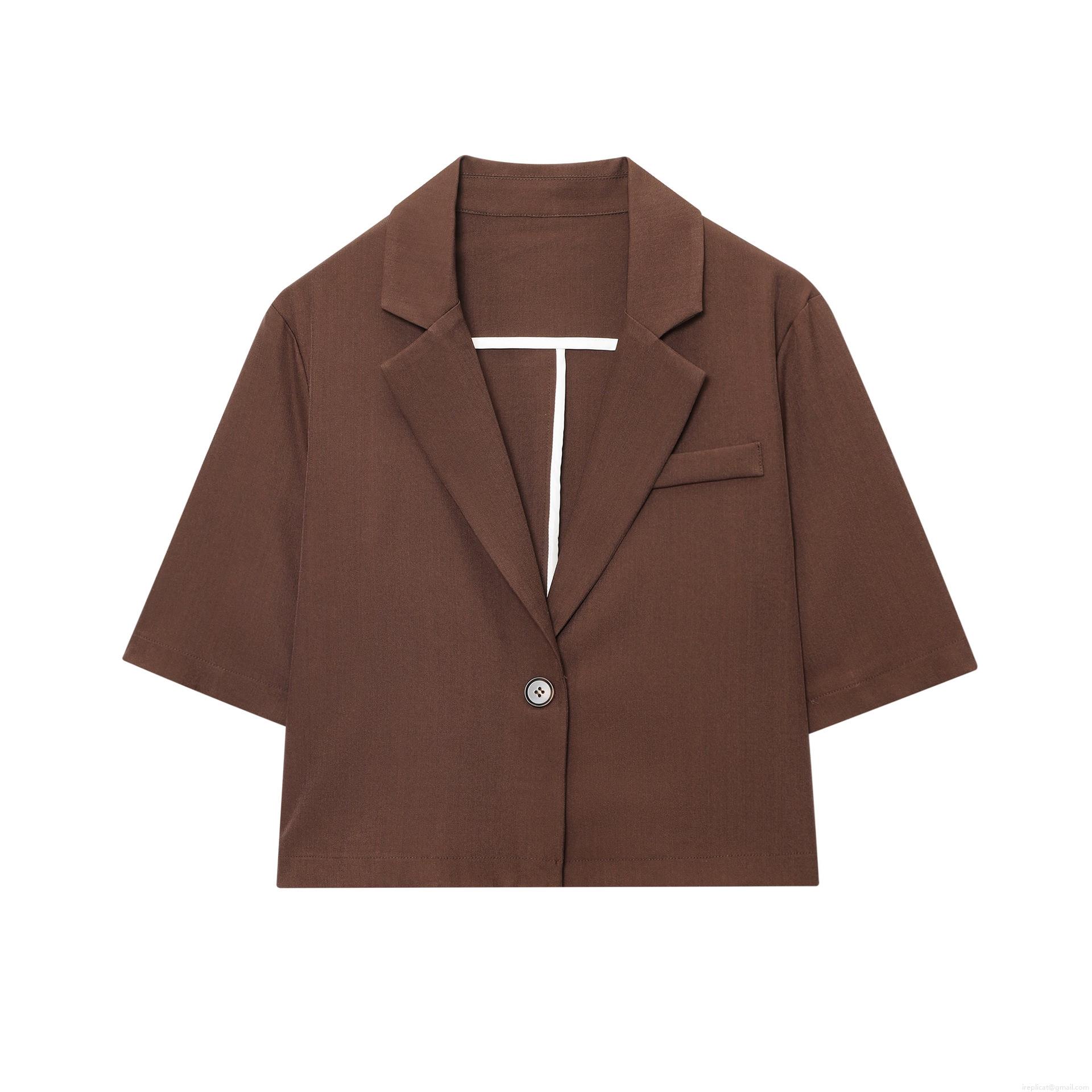 • Women's 2 Piece Shorts Set Short Sleeve Notch Lapel Cropped Blazer With High Waist Shorts Beaded Braided Belt Casual Summer Outfits Solid Color Polyester Blend Streetwear For Women