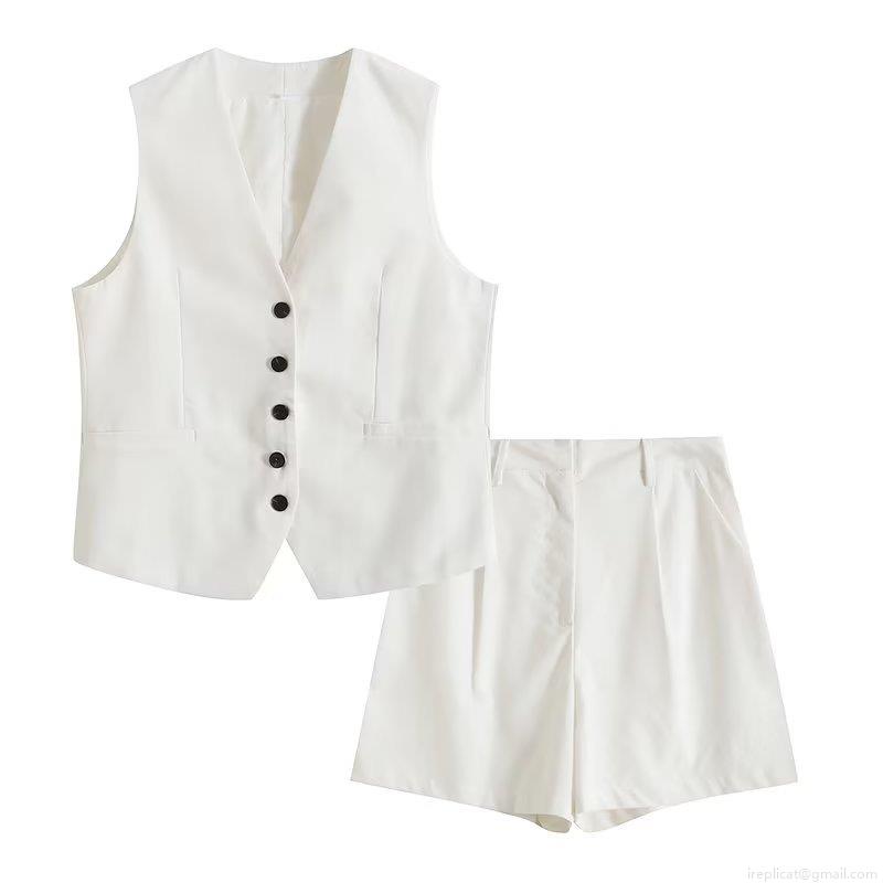 Lovely linen blend 2-piece set! Flattering V-neck vest with buttons, high-waist wide leg shorts. Light, breathable, minimalist style perfect for casual daily & office wear. Great fit and quality, highly recommend!