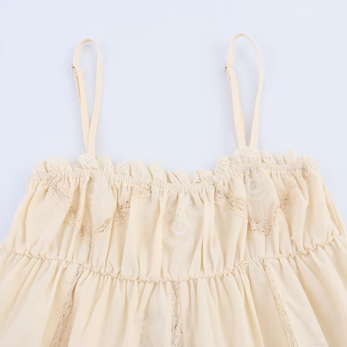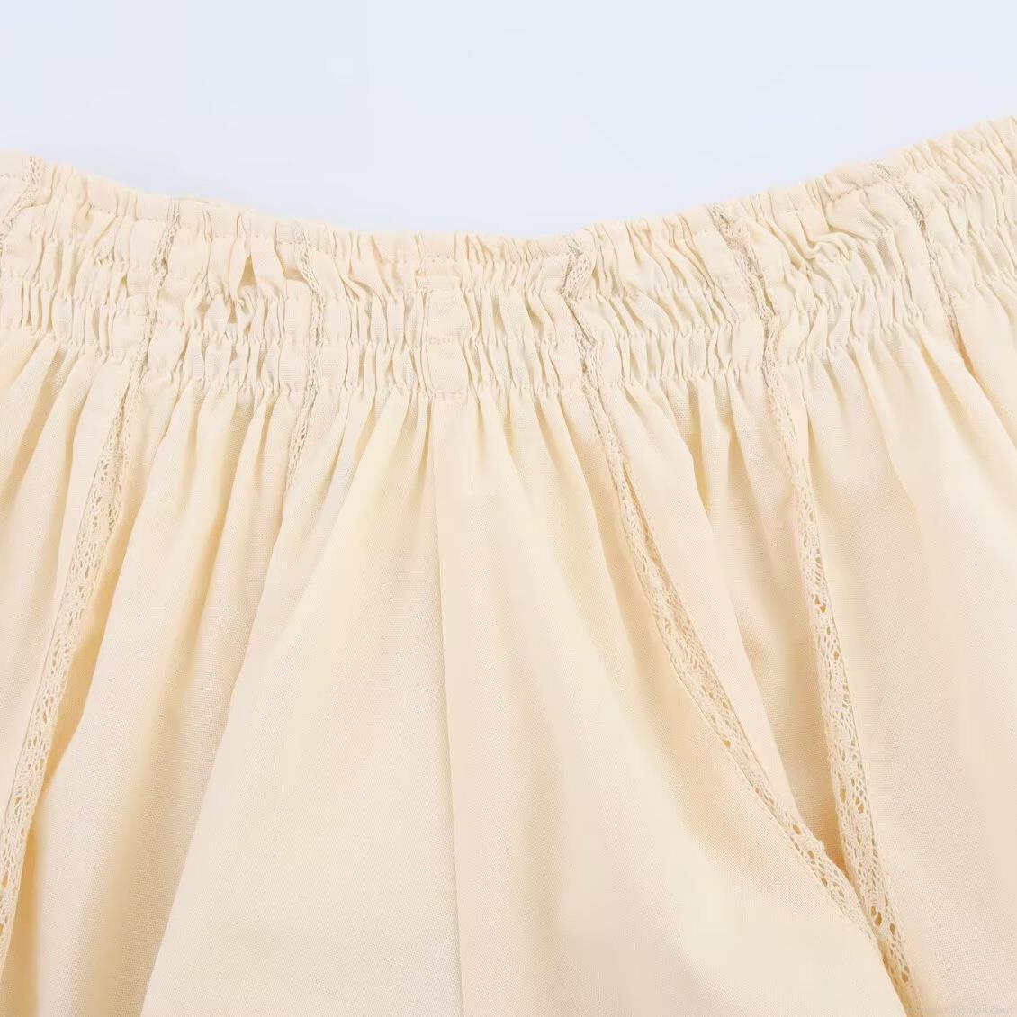 Solid Color, Embroidery, Pleats, Ruffles, Elastic Waistband, Openwork Lace