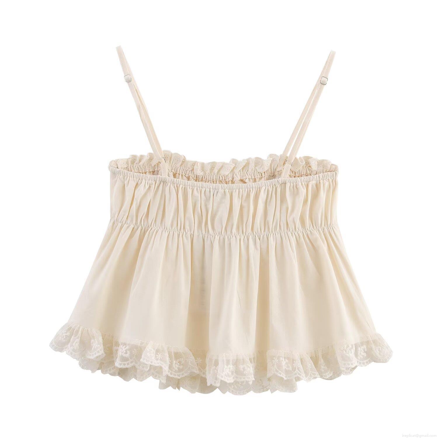 • Women's 2 Piece Summer Shorts Set Cotton Blend Lace Embroidery Camisole Top and High Waist Shorts Casual Loungewear Sweet Retro Outfit