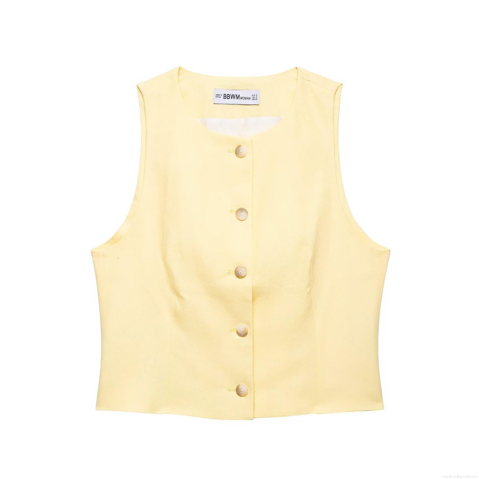 • Women's 2 Piece Summer Shorts Set Polyester Cotton Linen Texture Button Down Sleeveless Vest Top And High Waisted Wide Leg Shorts Outfits For Vacation Streetwear