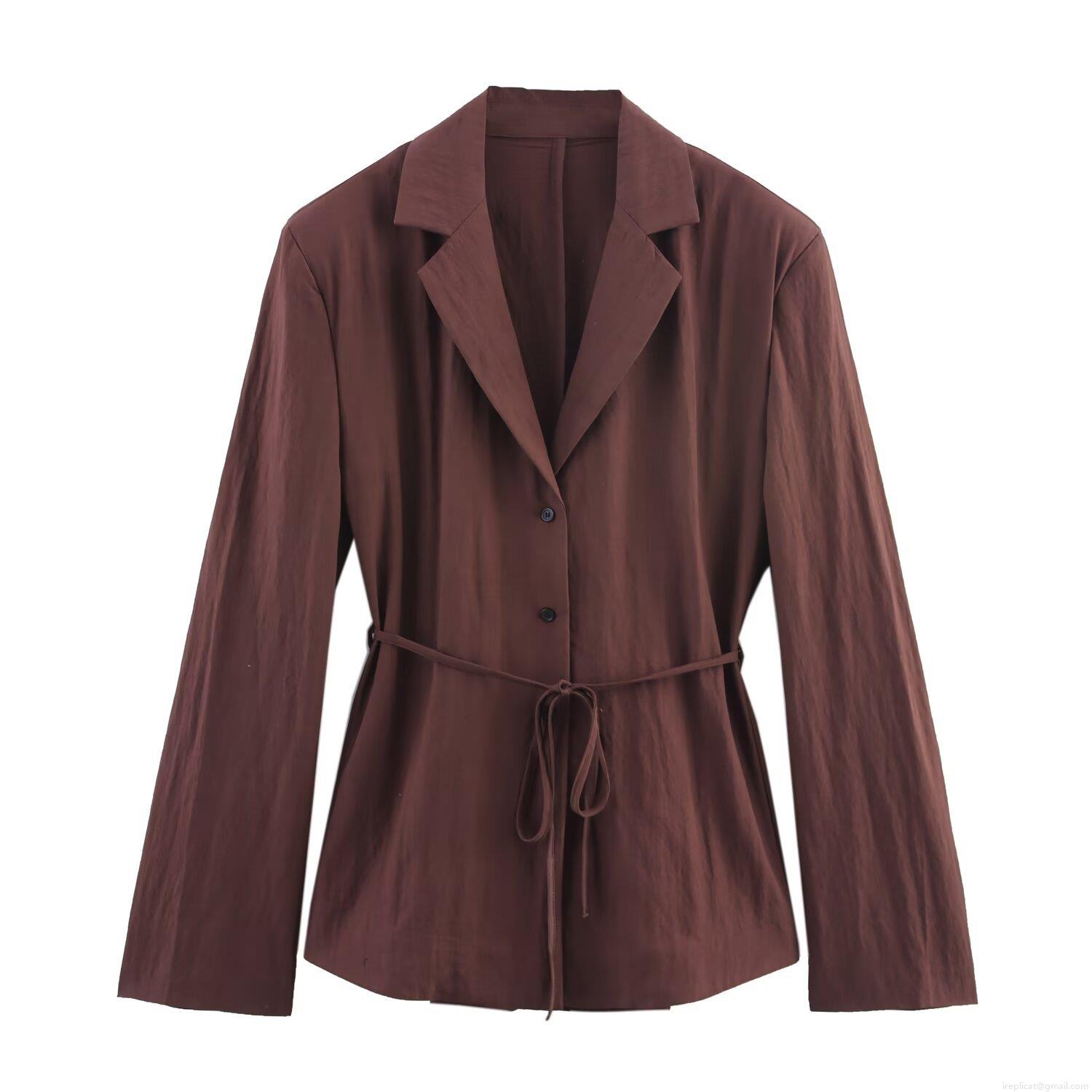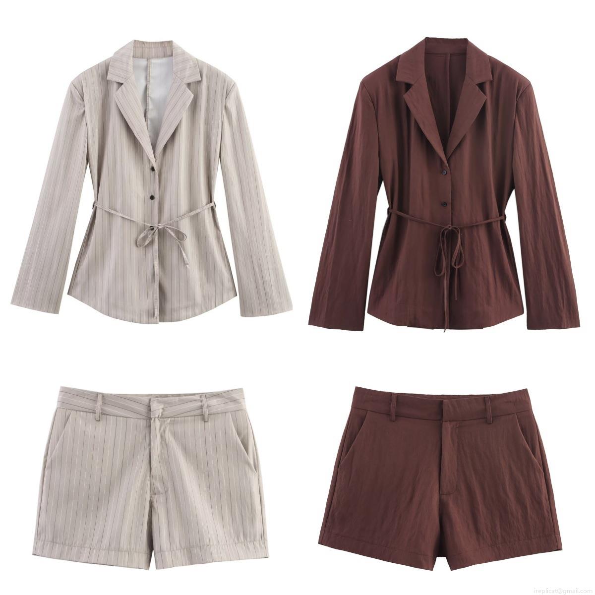 • Women's 2-Piece Business Casual Suit Set With Long Sleeve Belted Blazer And Matching Striped Shorts Summer Office Lady Streetwear Outfit