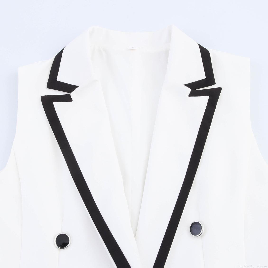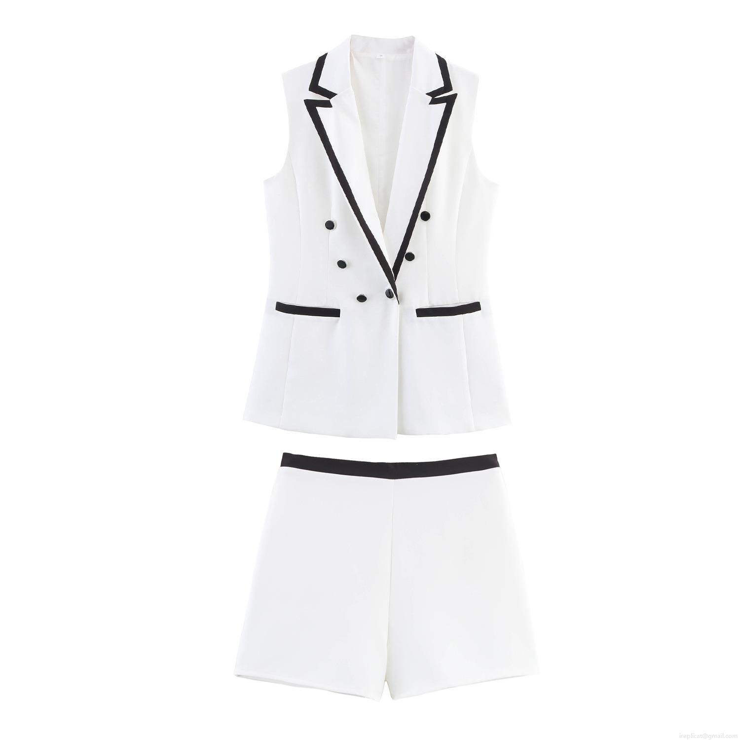 • Women's 2-Piece Co-ord Set Sleeveless Double Breasted Blazer Vest And High Waist Shorts With Contrast Piping Elegant Office Commuter Wear