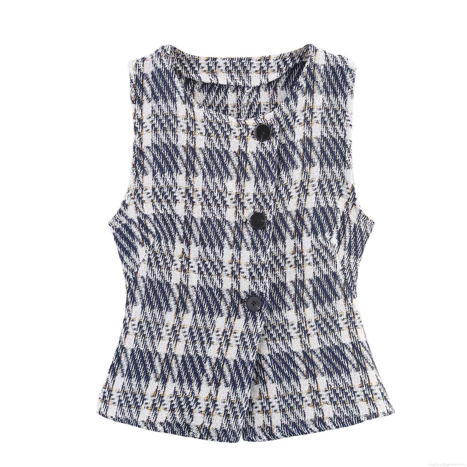 • Women's 2-Piece Tweed Plaid Vest And Culottes Set Sleeveless Round Neck Button Down Top High Waist Shorts Outfit Casual Streetwear Suit For Women