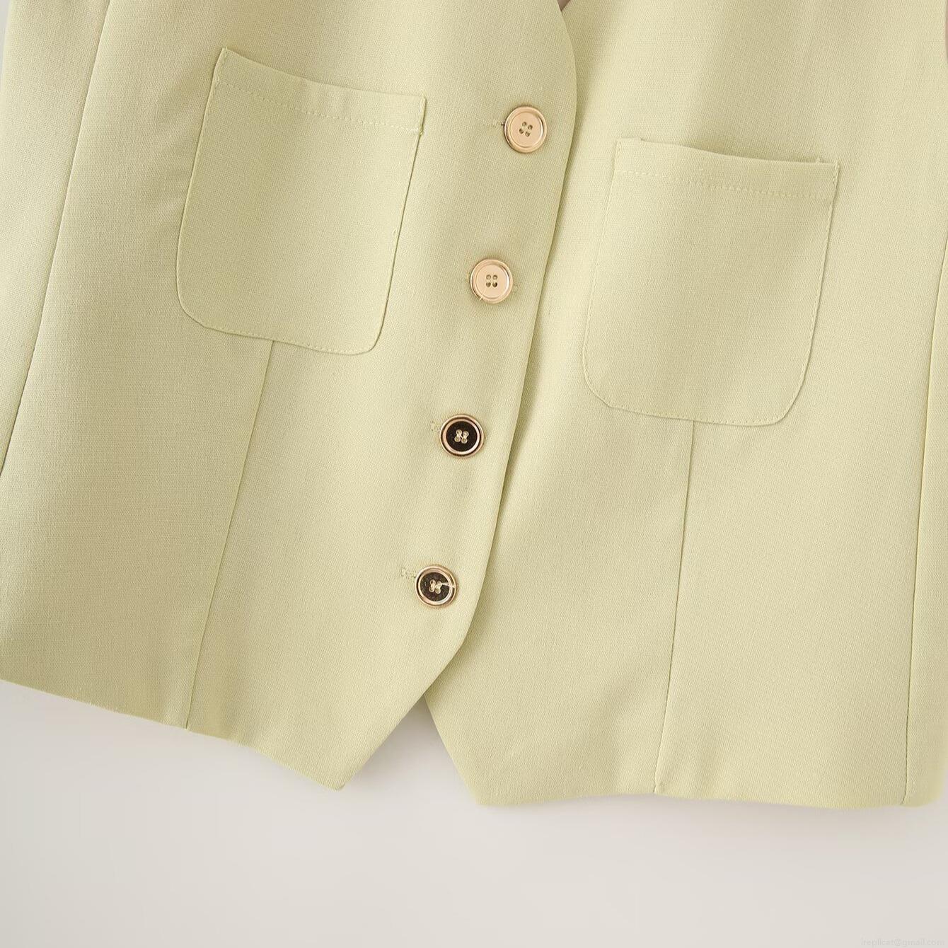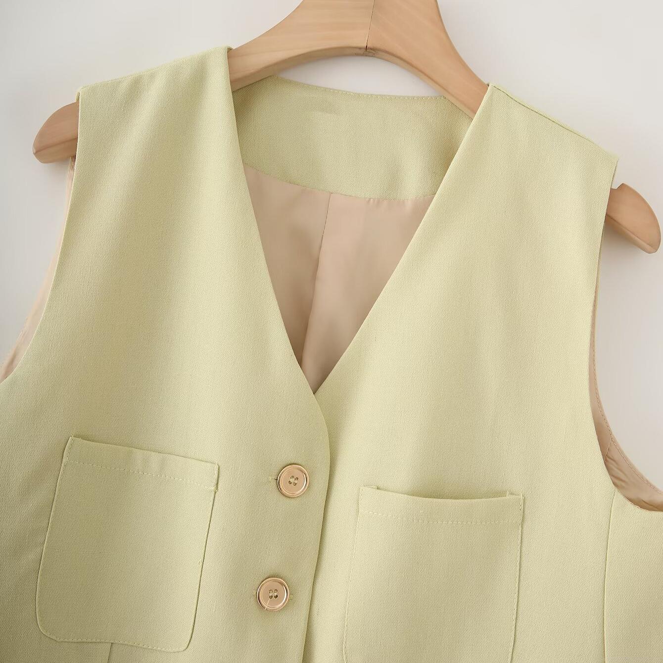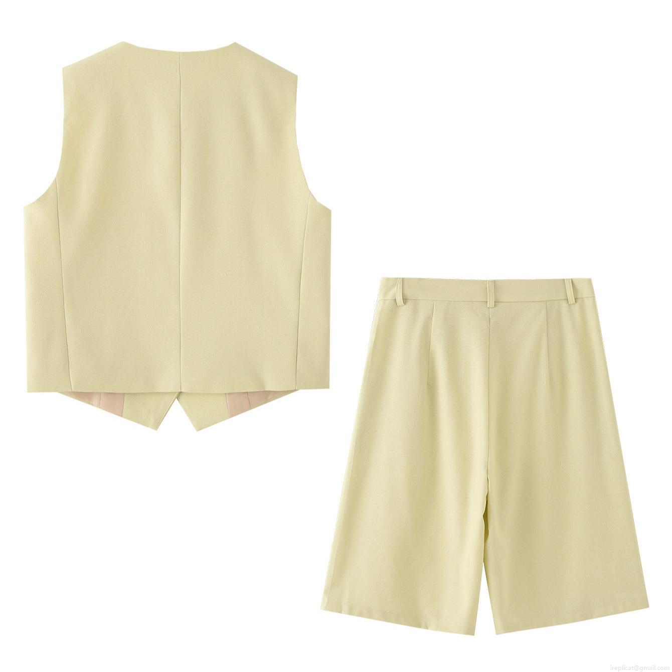 • Women's 2-Piece Vest Shorts Set Elegant V-Neck Sleeveless Single-Breasted Blazer Waistcoat And High Waist Wide Leg Shorts Solid Color Commuting Suit For Summer Office Casual Lady
