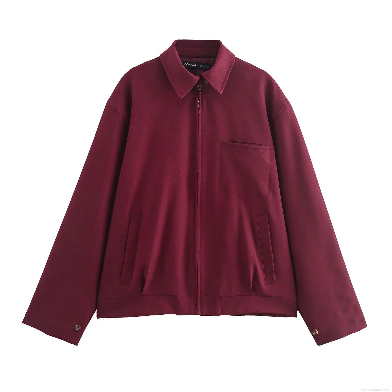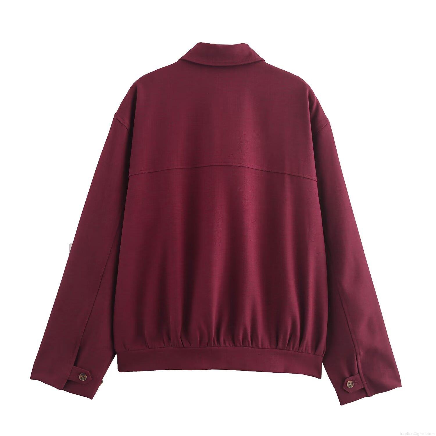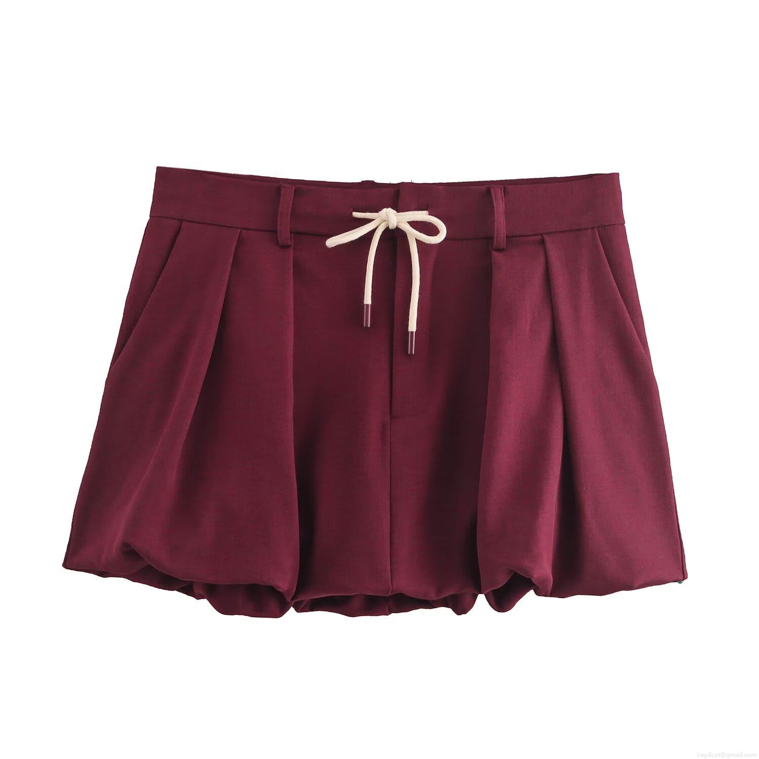 Women's Burgundy Quilted Twill Two Piece Set Zip Up Lapel Jacket With Pockets And High Waist Drawstring Bubble Shorts Casual Streetwear Outfits