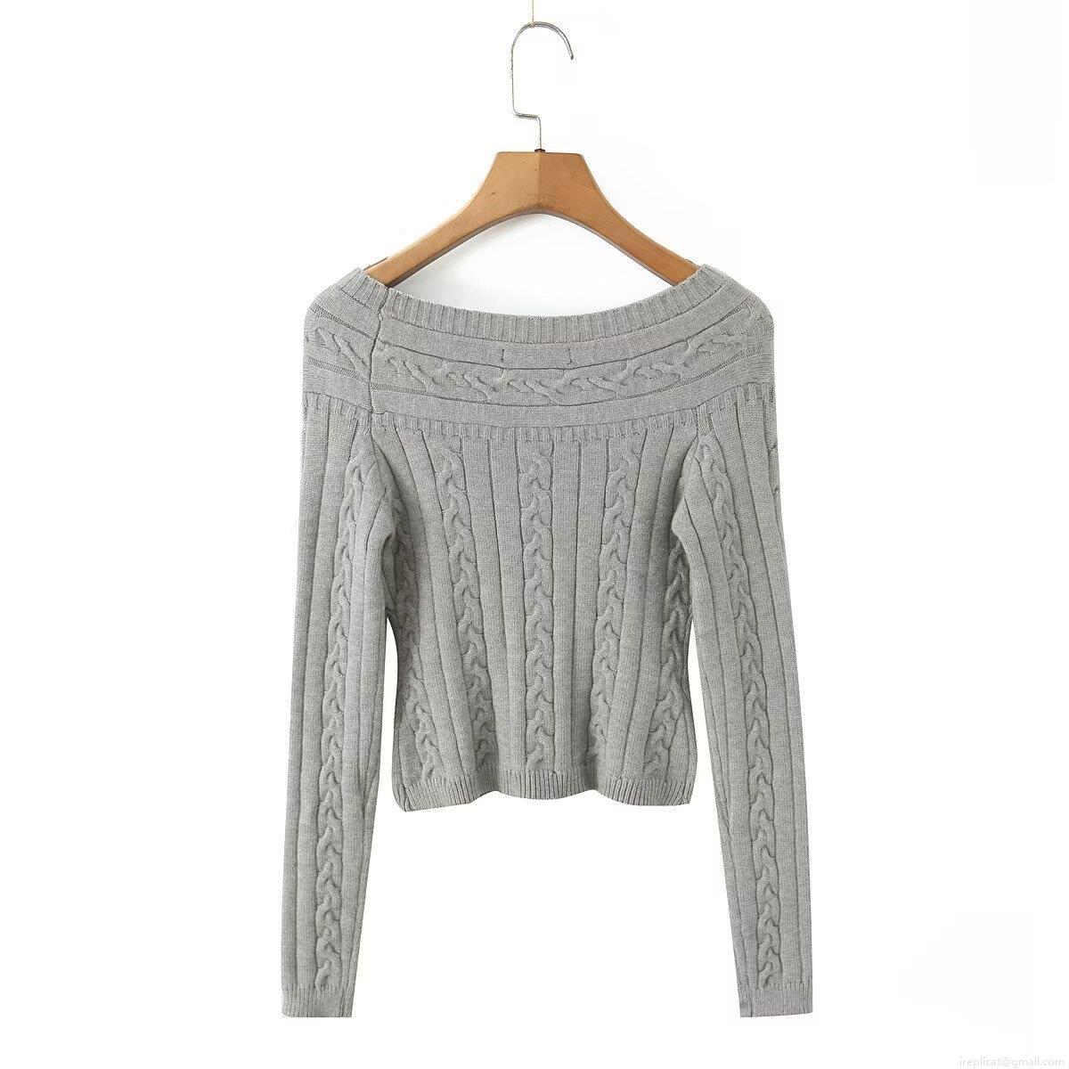 Solid Color, Off-the-shoulder Neckline, Braided Pattern, Cable Knit, Single-breasted Decoration, Off-shoulder Design