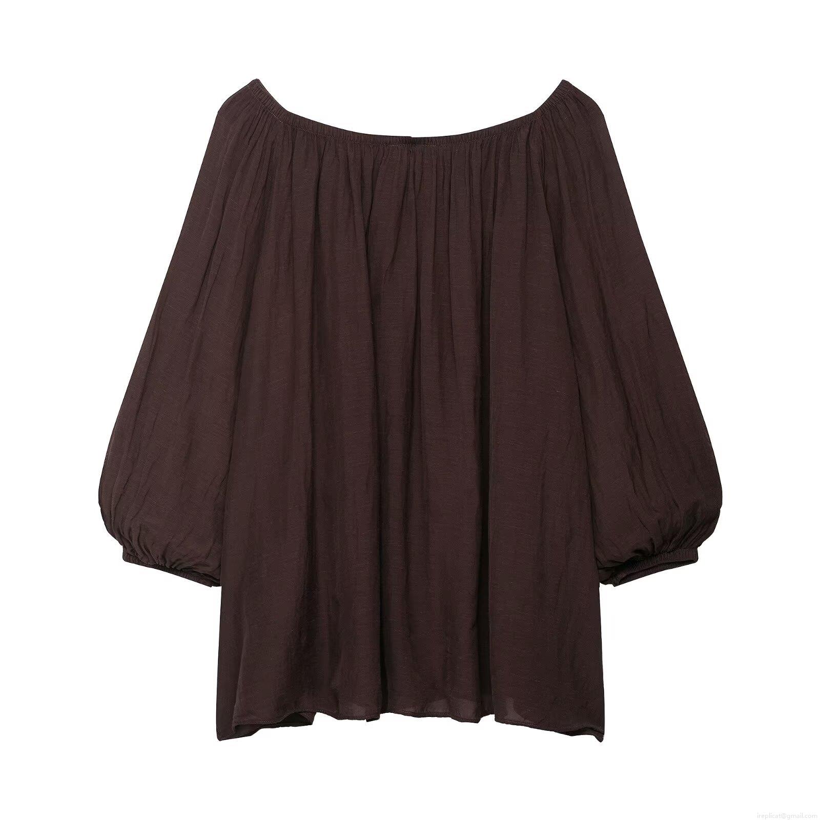 Solid Color, Puff Sleeves, Off-the-shoulder Neckline, Pleated Design, Drawstring Adjustment