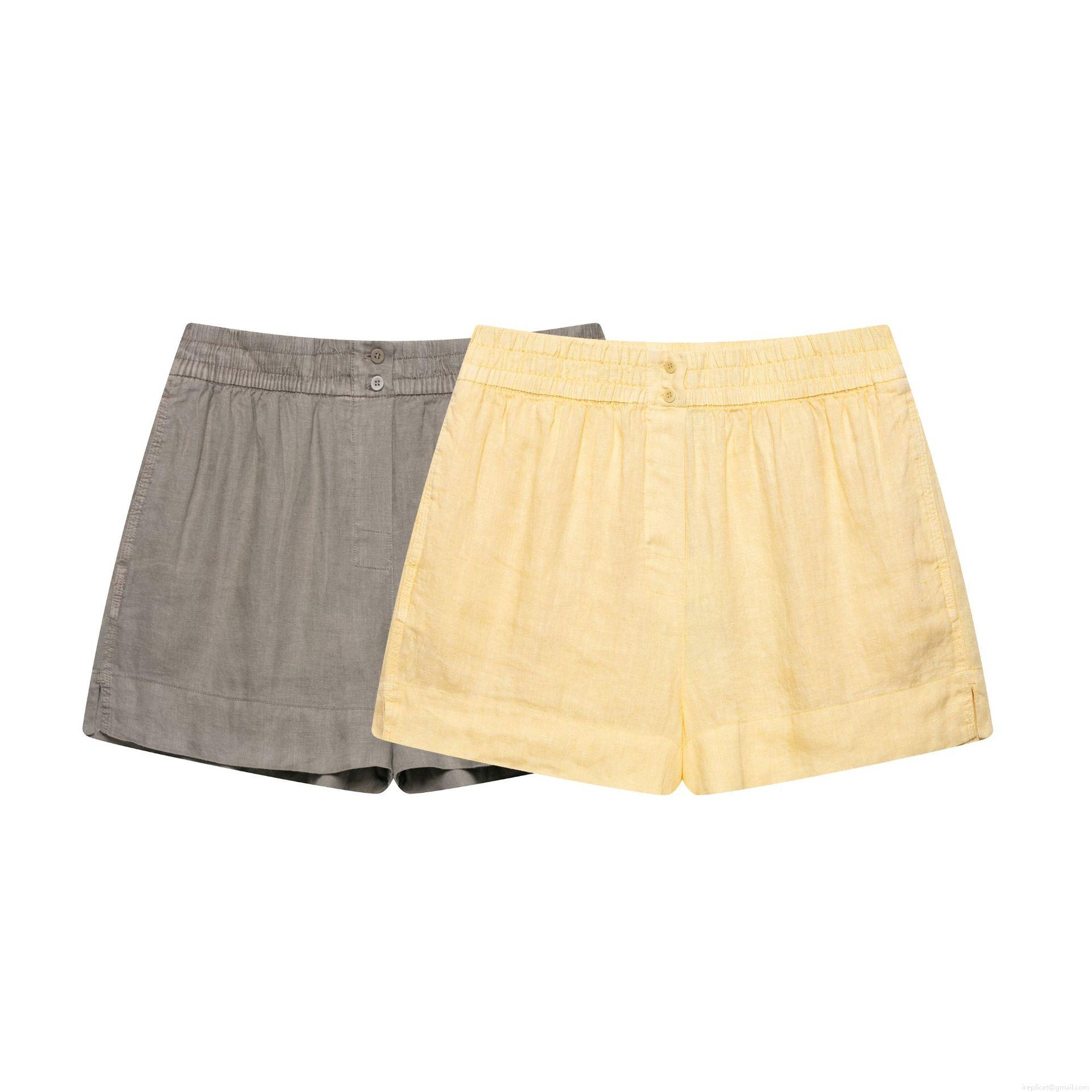 Solid Color, Elastic Waistband, Linen Texture, Buckle Design