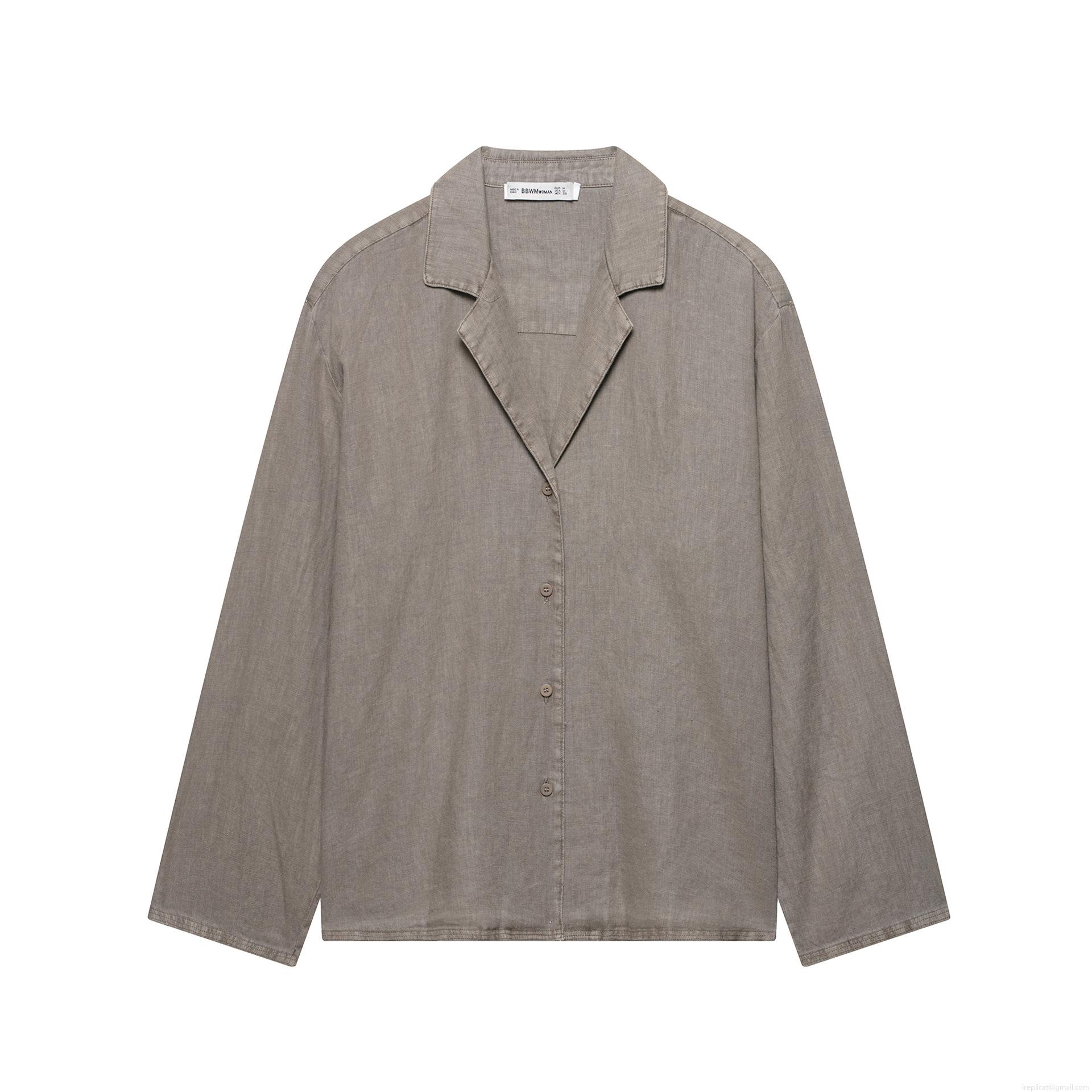 • Women's Casual Linen Texture Two Piece Shorts Set Outfits Solid Color Long Sleeve Button Down Shirt And High Waist Elastic Shorts Summer Beach Streetwear