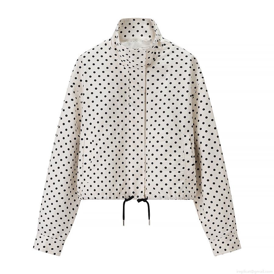 • Women's Casual Polka Dot Two Piece Outfits Stand Collar Long Sleeve Zipper Jacket and High Waist Shorts Set Streetwear Polyester Fashion Clothing
