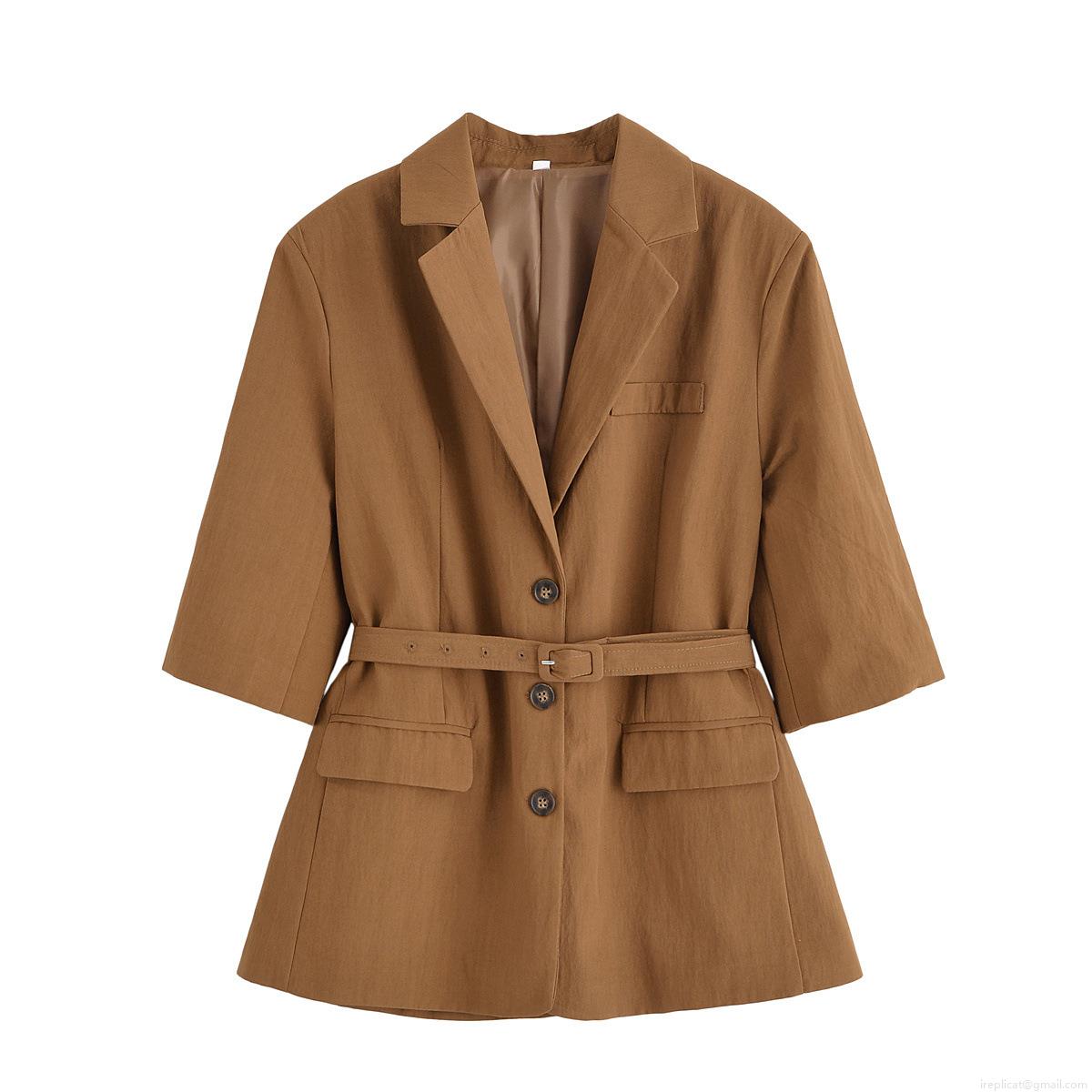 Solid Color, Belt Decoration, Pleated Design, Three Buttons