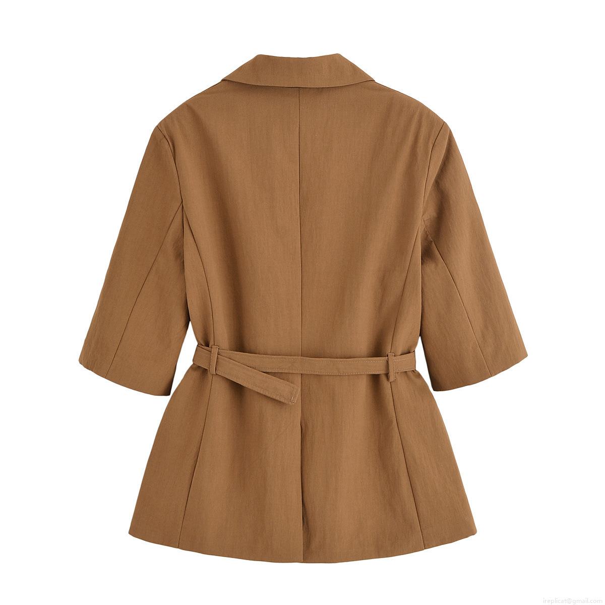 • Women's Casual Polyester Blazer and Shorts Two-Piece Set Belted Notched Lapel Five-Point Sleeve Top and Wide Leg Shorts Streetwear Summer Co-ords
