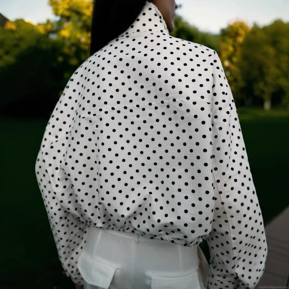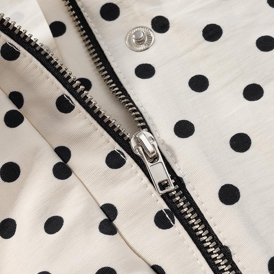 • Women's Casual Polyester Two-Piece Set Stand Collar Long Sleeve Polka Dot Jacket And High Waist Shorts Set For Daily Outdoor Fashion