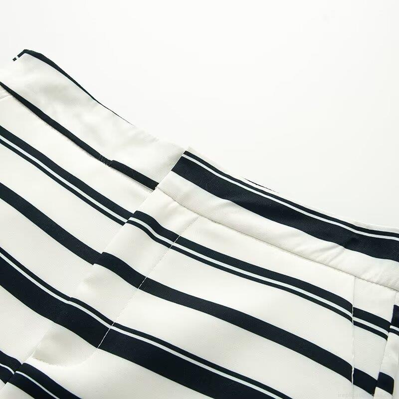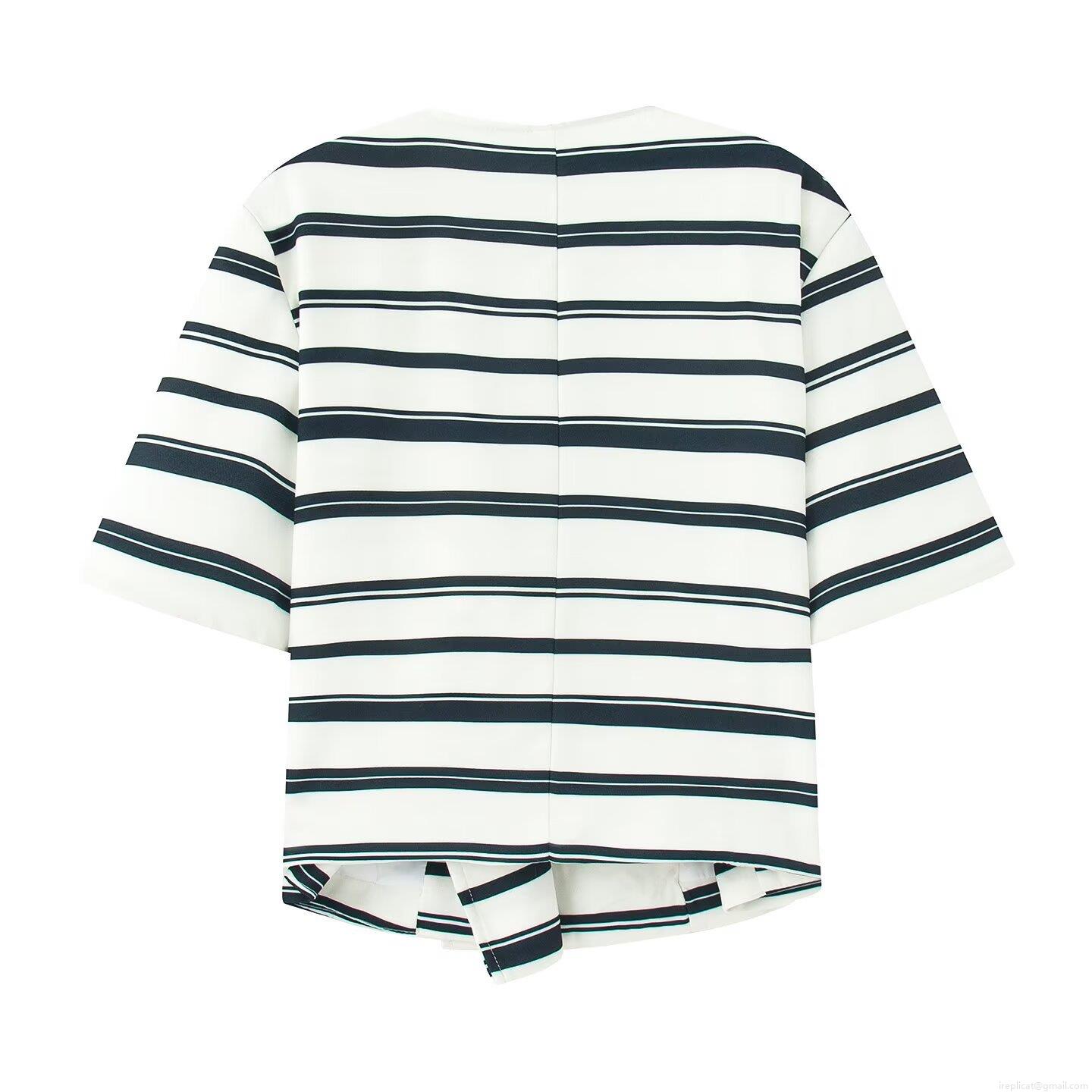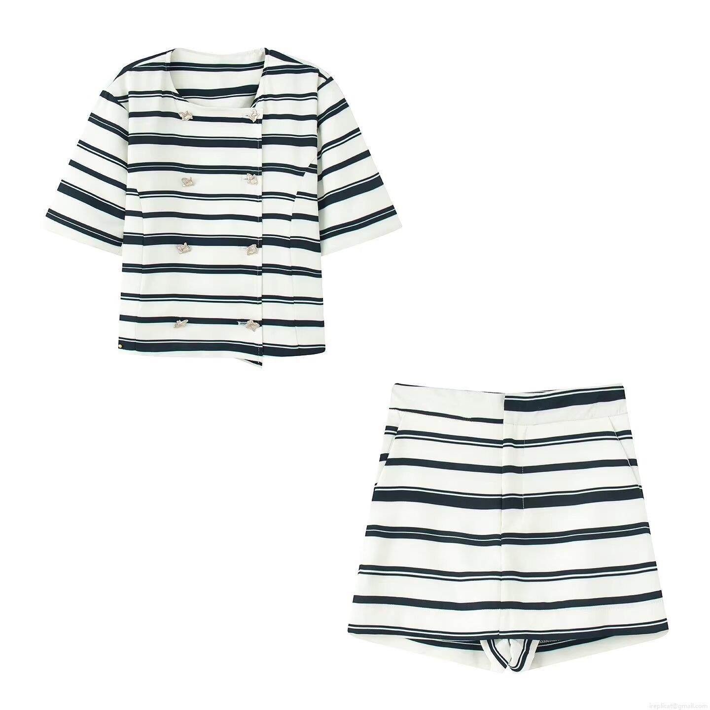 • Women's Casual Stripe Two Piece Set Double Breasted Short Sleeve Top And Matching Shorts 100% Polyester Summer Fashion Outfit For Daily Commuting Office Lady