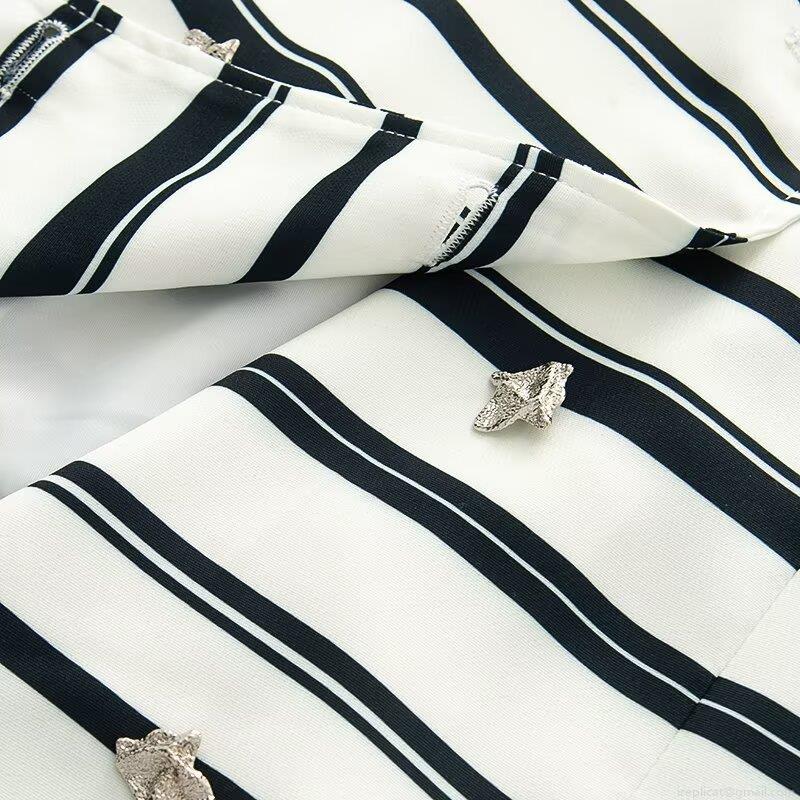 Stripe, Color Blocking, Horizontal Stripes, Double-breasted, Decorative Buttons