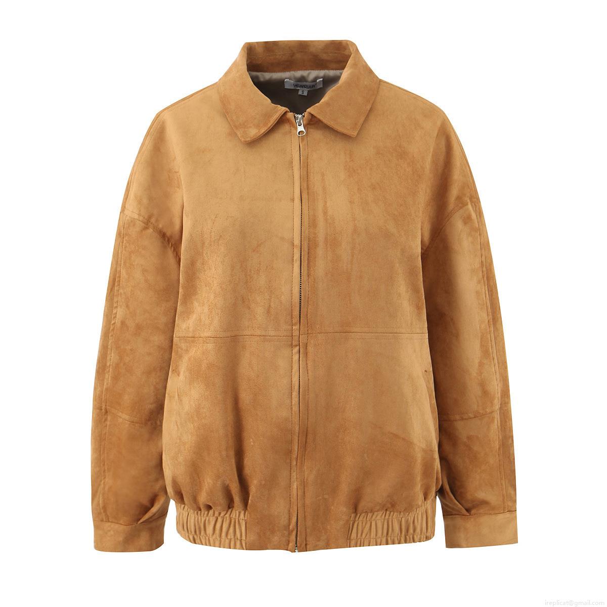 Solid Color, Metal Zipper, Suede Texture, Elastic Hem, Lapel Design