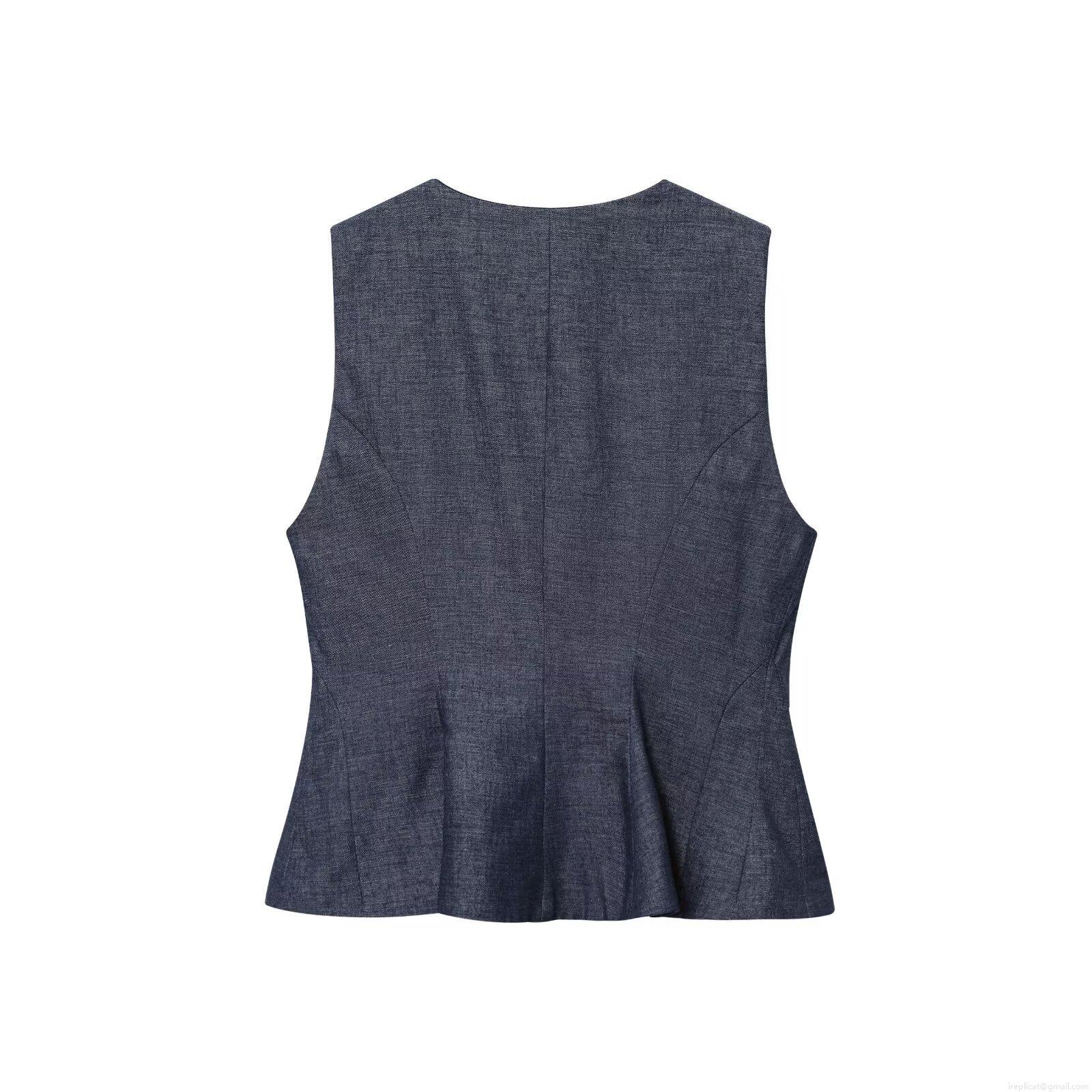• Women's Casual Tencel Denim Vest and Shorts Two-Piece Set Solid Color High Waist Double Breasted Sleeveless Top and Button Shorts Streetwear Outfits For Lady