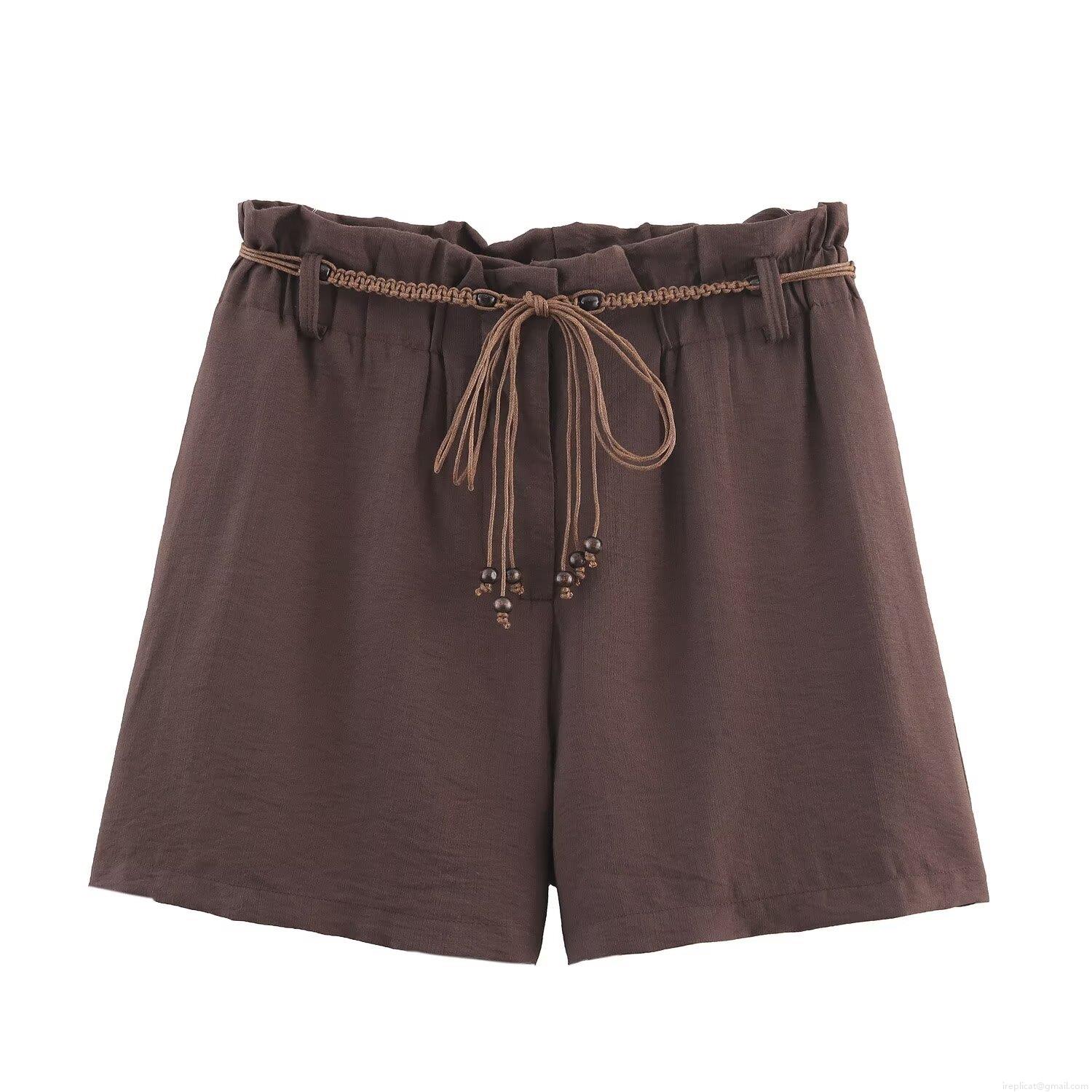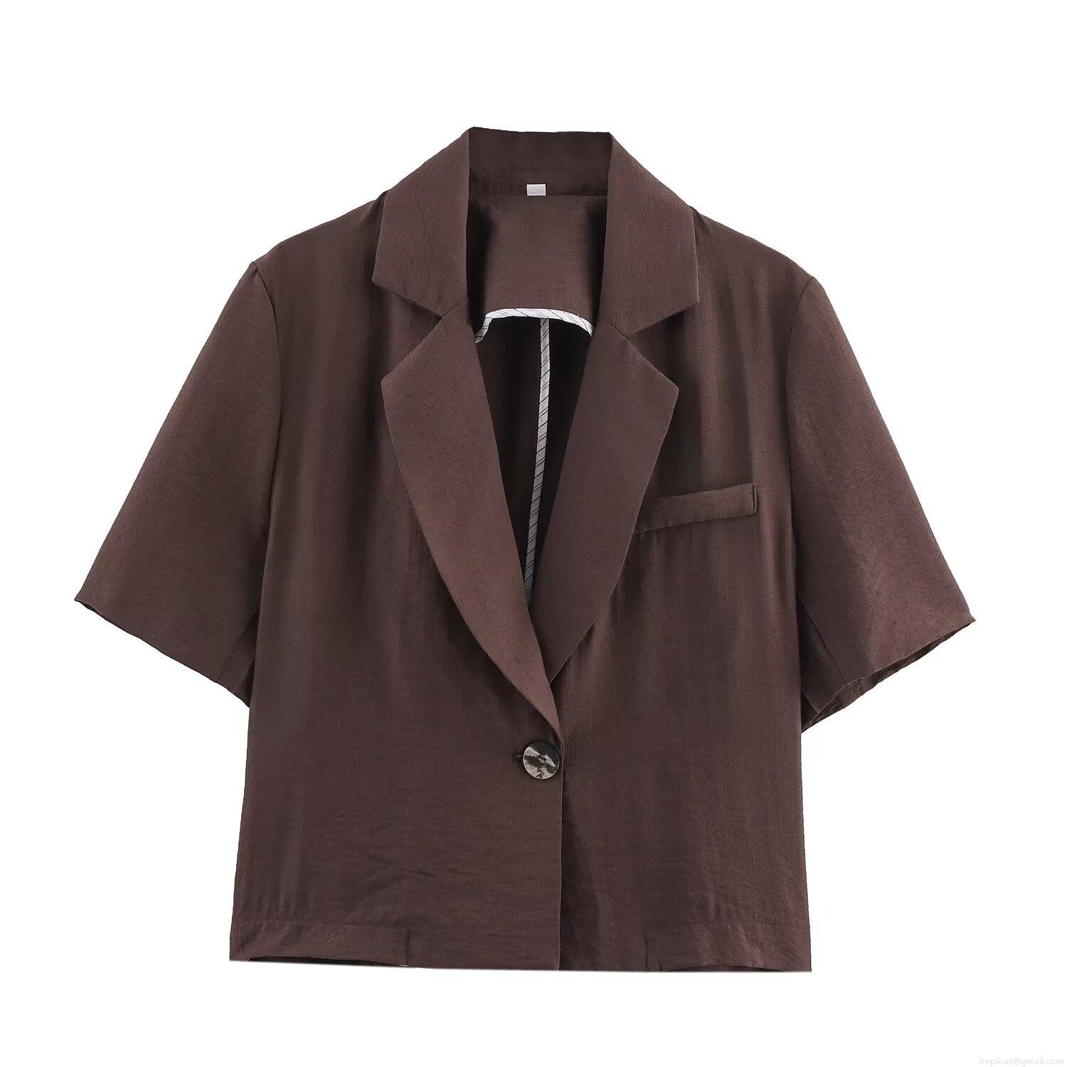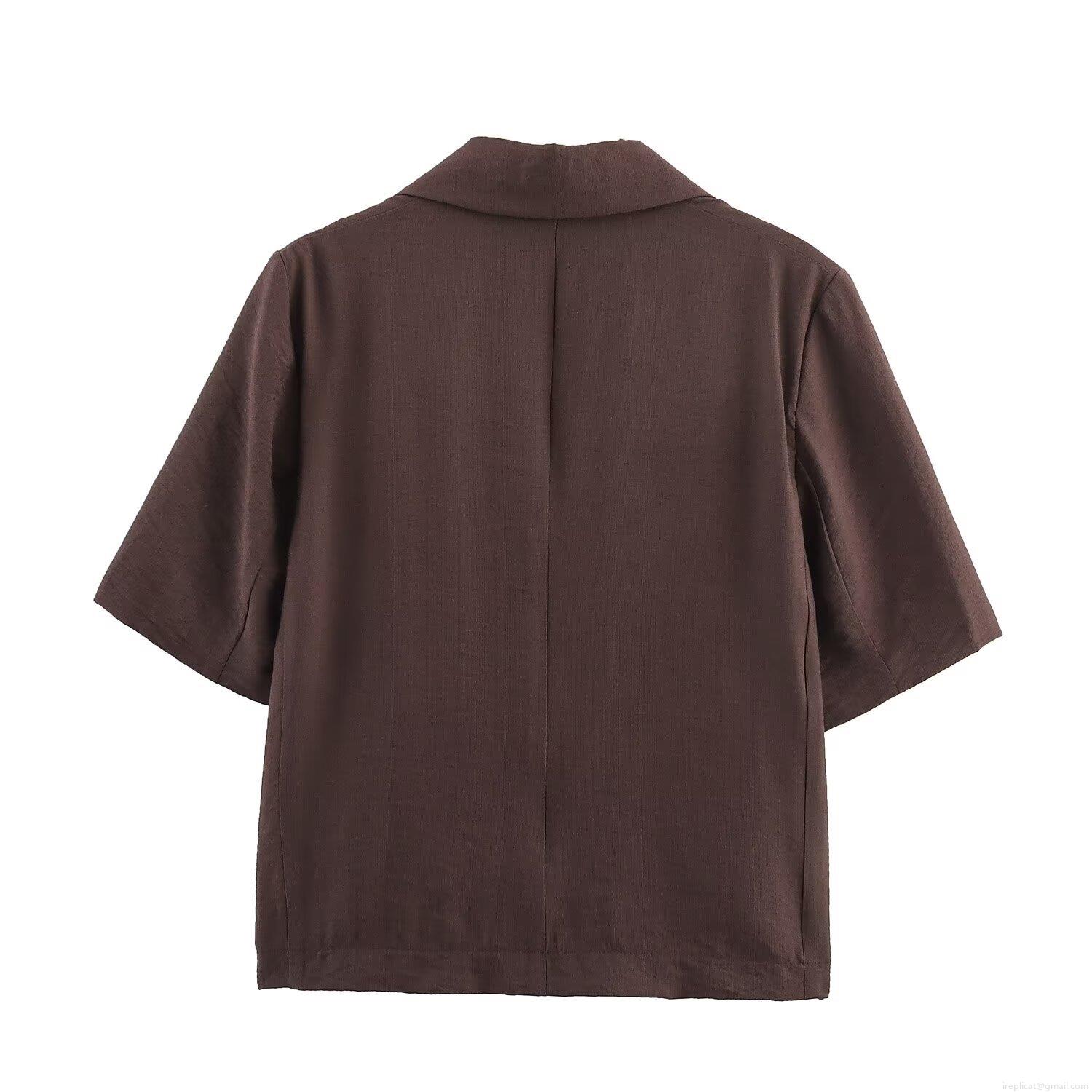 • Women's Casual Two Piece Shorts Set Faux Linen Texture Short Sleeve Blazer and Drawstring Shorts Solid Color Coffee Brown Streetwear Summer Outfit for Women