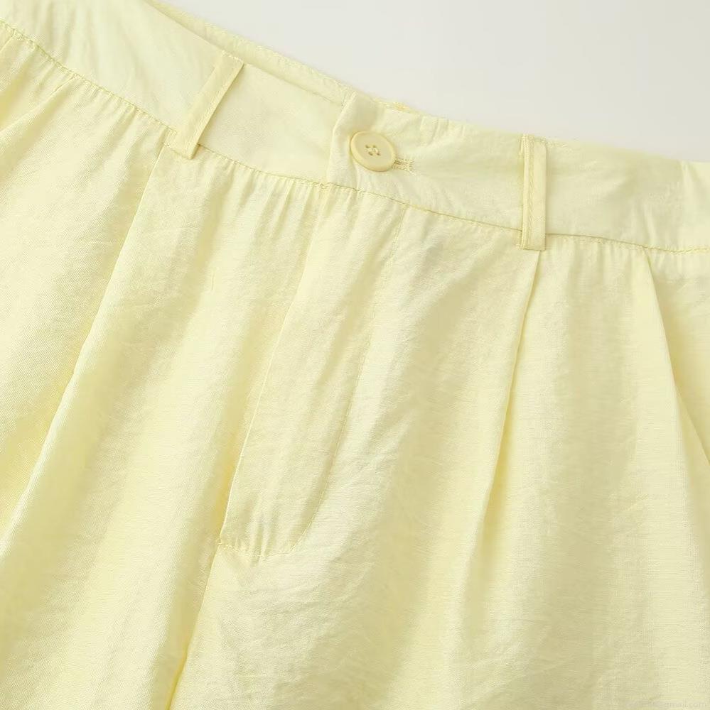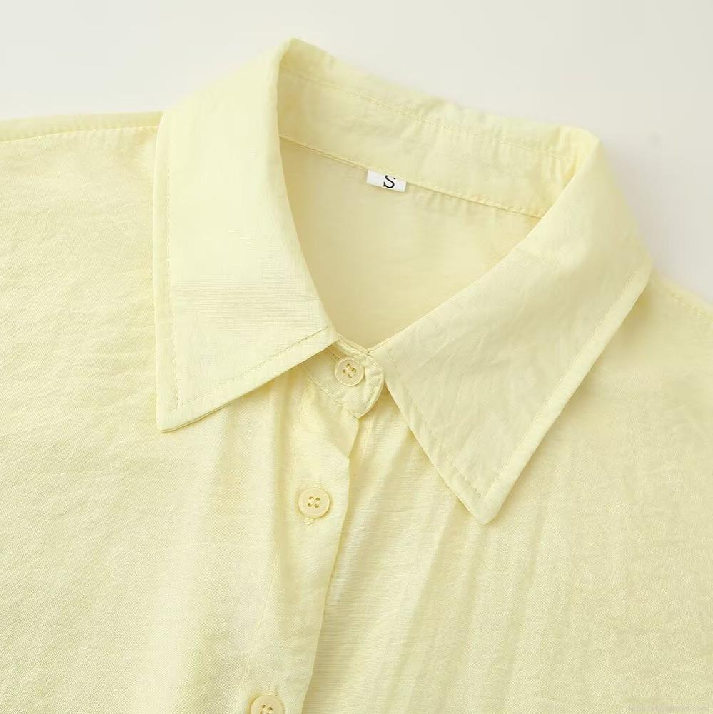 • Women's Casual Two Piece Shorts Set Polyester Spandex Solid Color Long Sleeve Button Up Shirt And High Waist Pleated Shorts Outfit For Summer Autumn