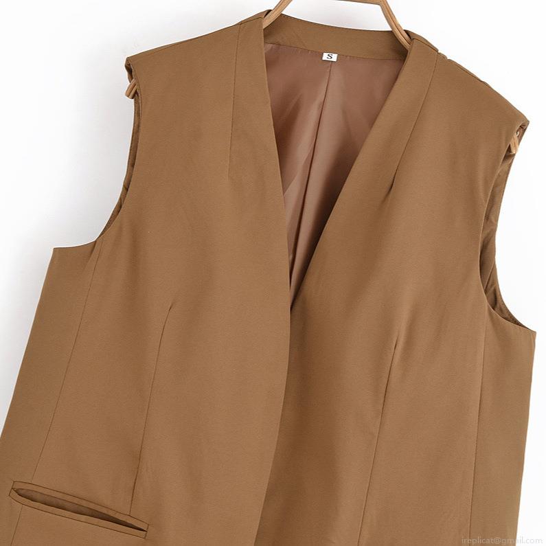 Solid Color, V-neck, Sleeveless, Pleats, Wide-leg, High-waisted, Suit Collar