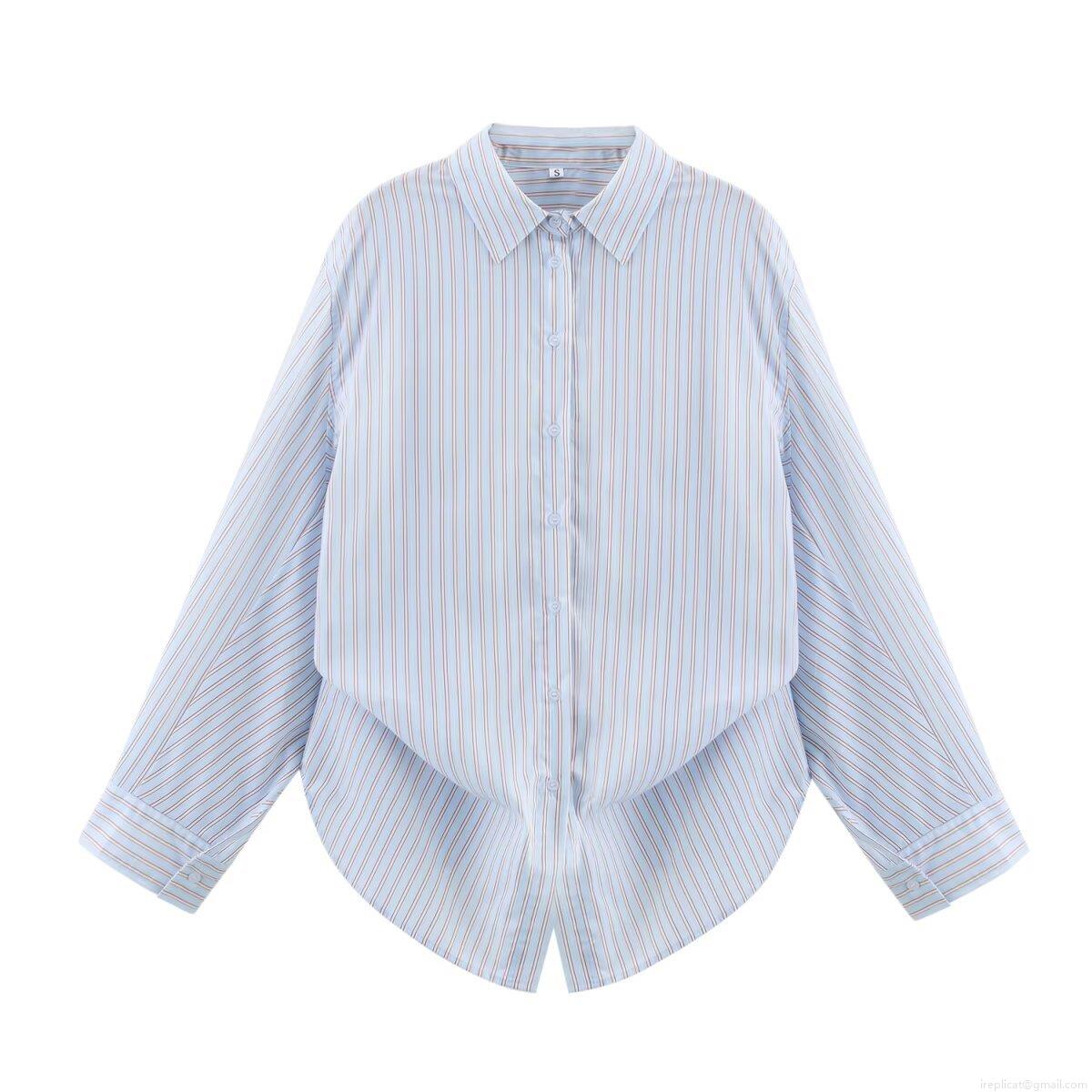 • Women's Casual Vertical Stripe Two-Piece Set Loose Long Sleeve Button Down Poplin Shirt And Matching Shorts Set Summer Streetwear Outfits