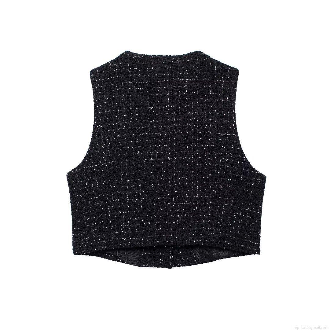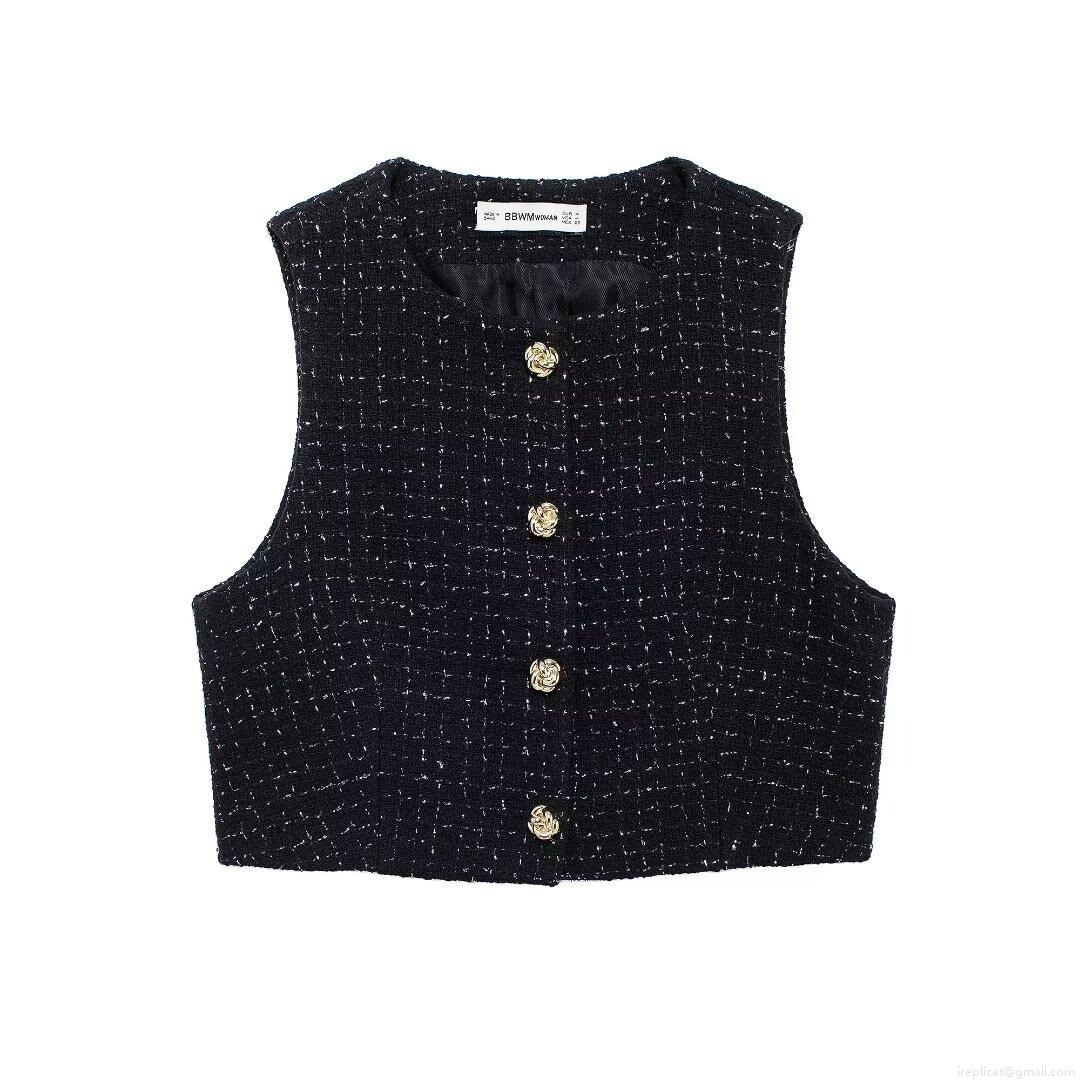 • Women's Chic Tweed Two-Piece Set Sleeveless Vest And High Waisted Skort With Belt Gold Flower Buttons Elegant Streetwear Outfits For Women