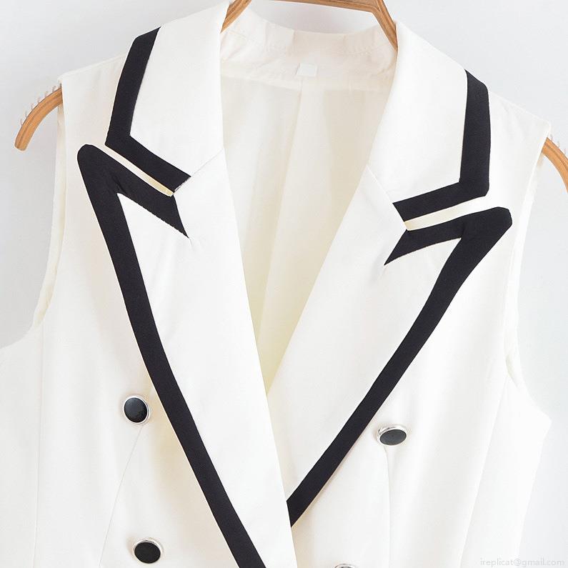 • Women's Contrast Trim Double Breasted Lapel Sleeveless Vest And High Waist Shorts Two Piece Set Business Casual Office Wear Separates